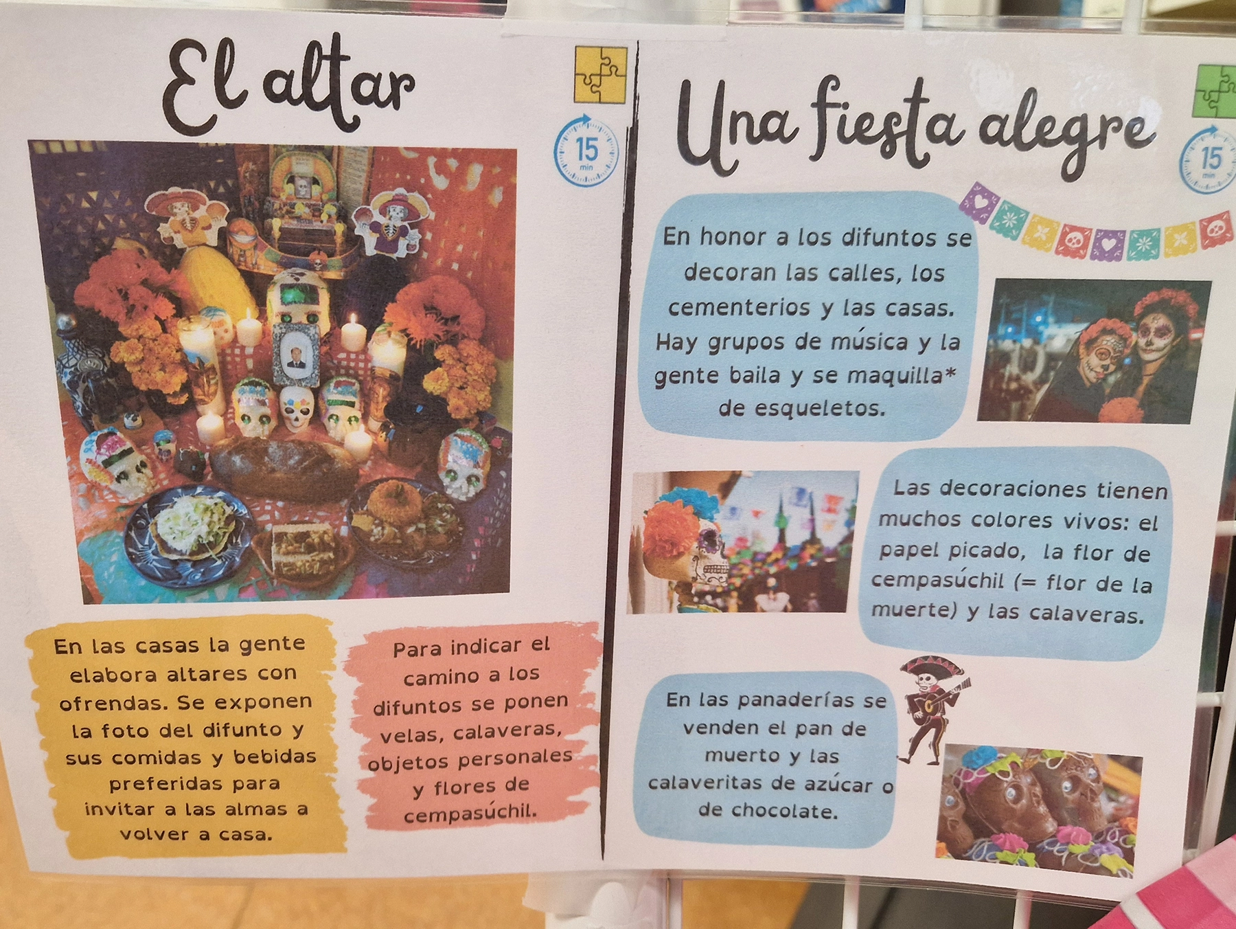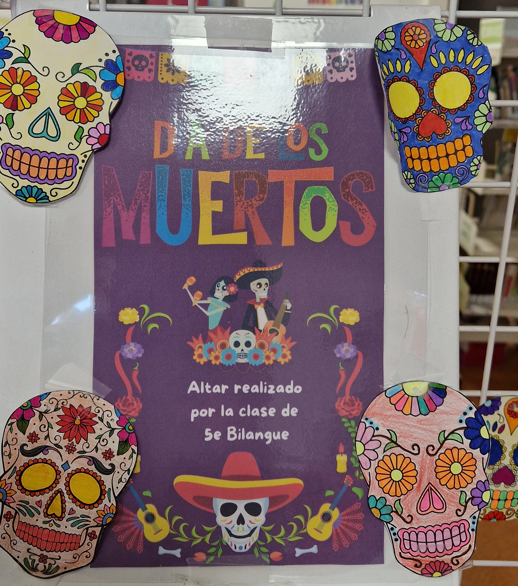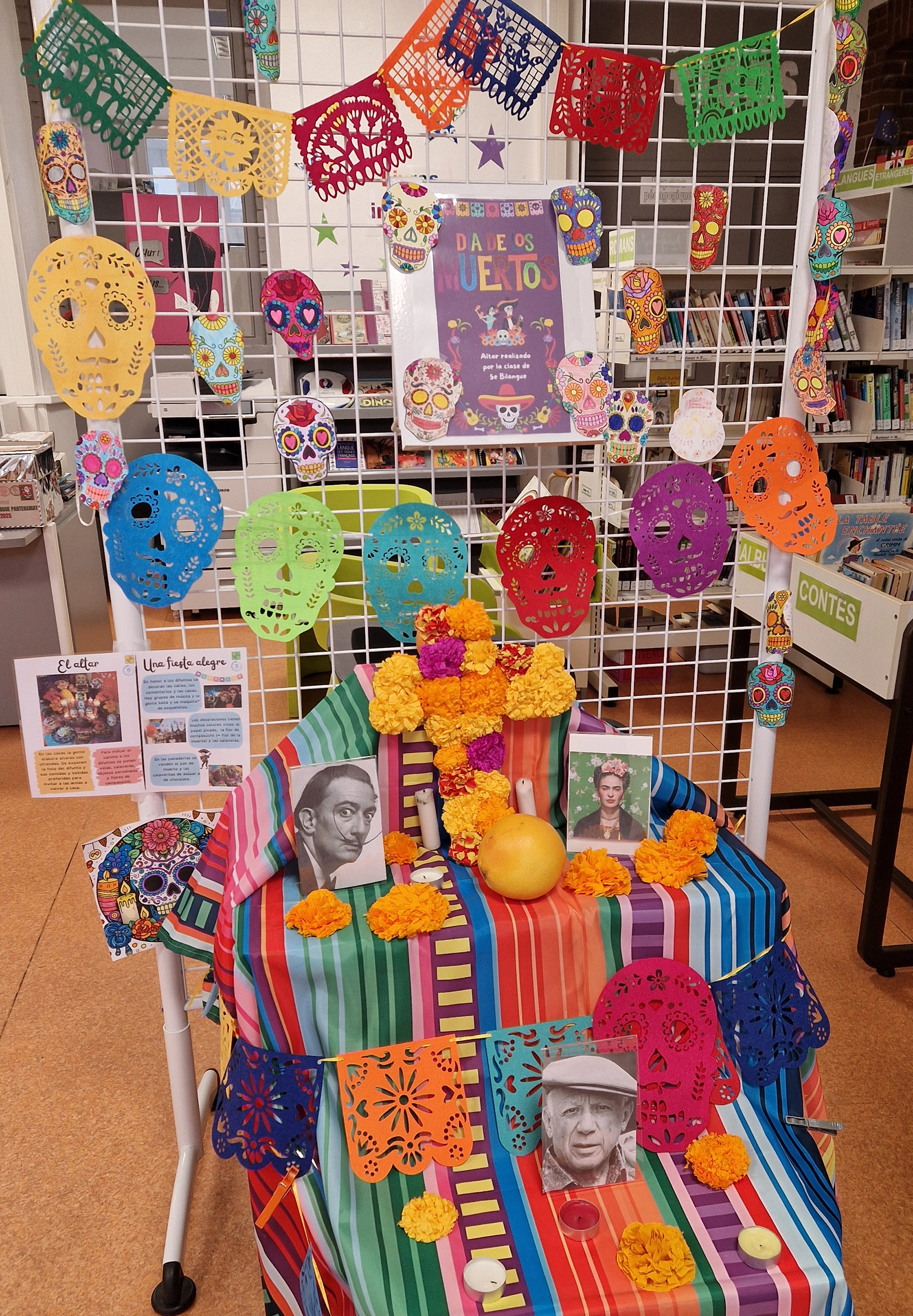 Dans le cadre du cours d’espagnol, les élèves de 5ᵉ bilangue ont réalisé un autel pour célébrer El Día de los Muertos. Cette création est actuellement exposée au CDI.