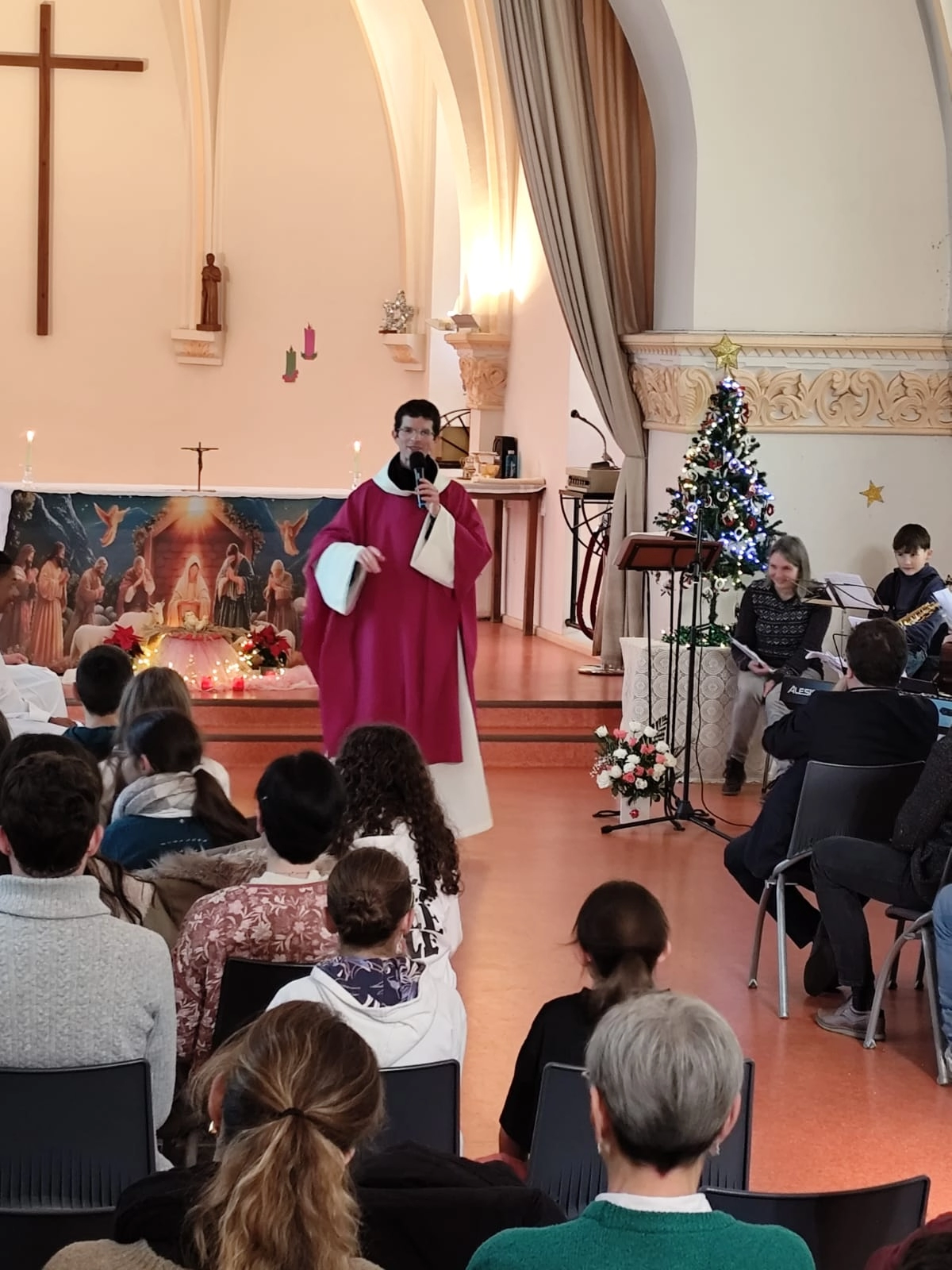 La messe de Noël s’est tenue à la chapelle le 19 décembre 2025 à 13h, en présence du père François‑Xavier. Dans son prêche, il a invité chacun à vivre la solidarité au quotidien, en la comparant à l’esprit d’équipe propre au rugby. Il a même cité Antoine Dupont, rappelant que, comme sur un terrain, « on n’avance pas tout seul », et que cette dynamique collective est tout aussi essentielle au sein de l’Église.