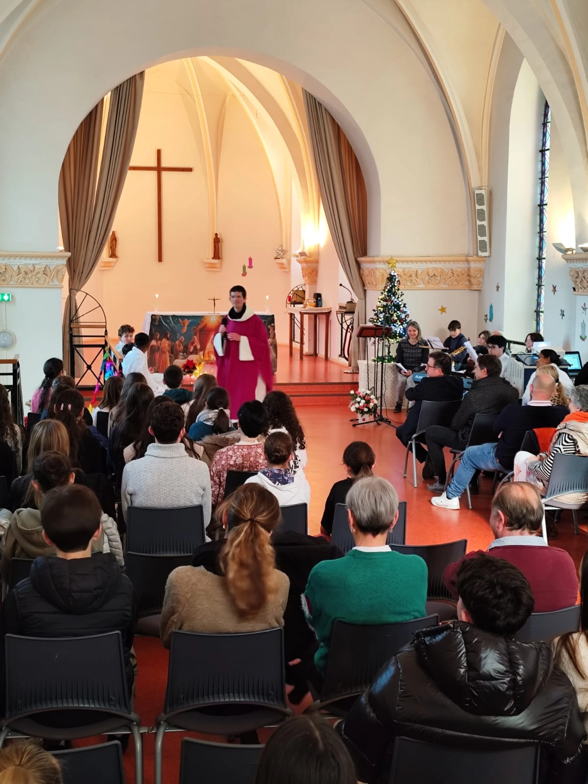 L’ensemble scolaire était convié : élèves, enseignants et personnels. Tous ceux qui le souhaitaient se sont joints à cette célébration chaleureuse et fédératrice.