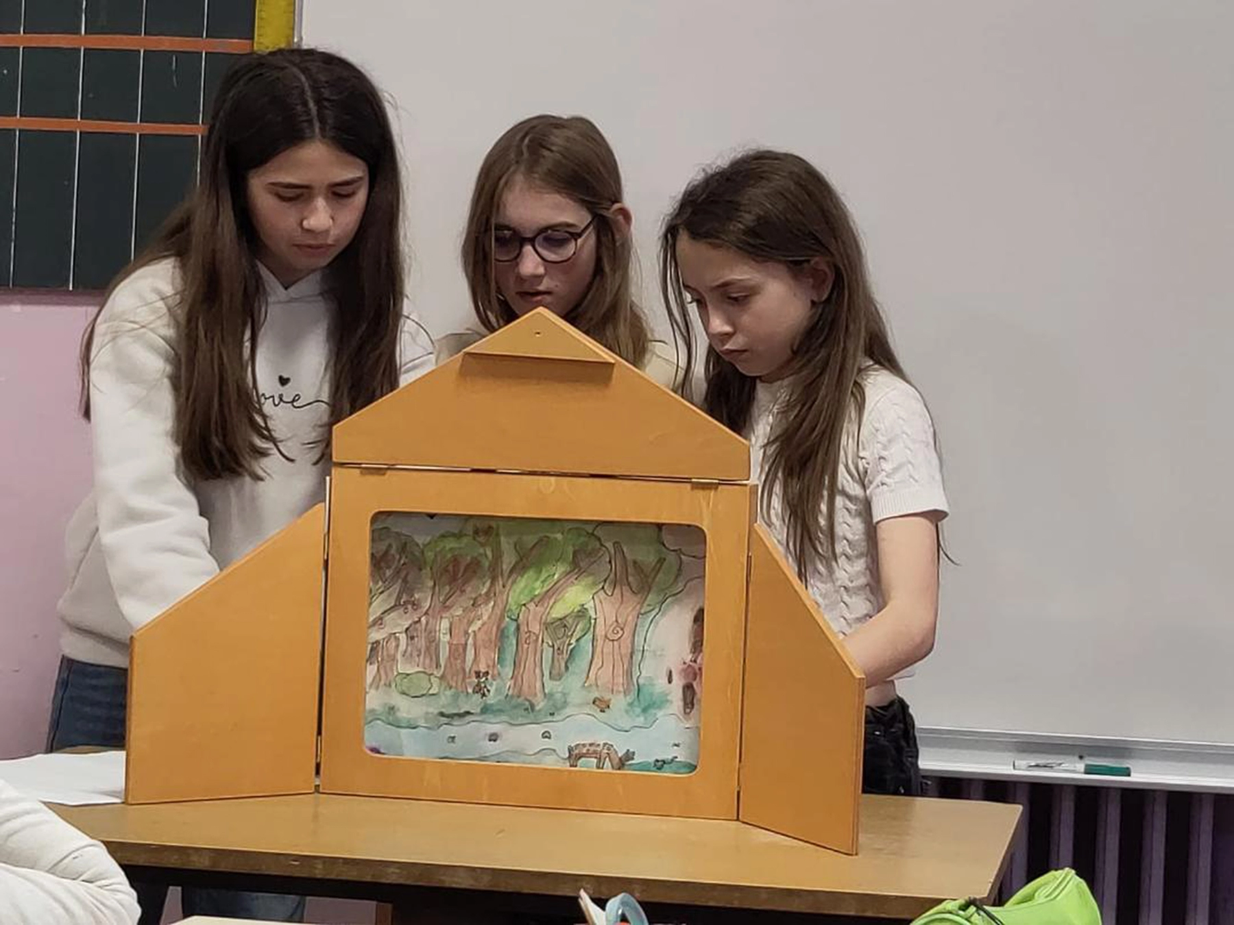 Dans le cadre du travail mené en cours de français sur les récits de création, les élèves de 6ème A, D et E ont inventé leur propre histoire, ils l’ont illustrée et l’ont présentée sous forme de kamishibaï (théâtre japonais).