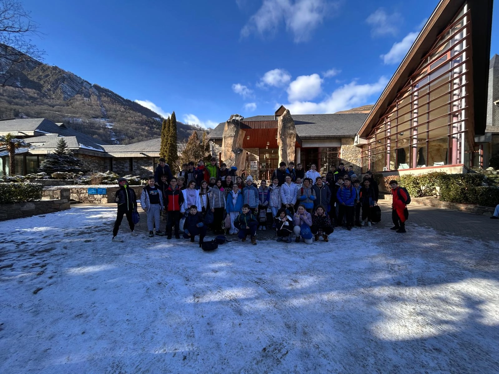 La neige tombée dans la nuit a offert un paysage féerique au réveil. Hier soir, les élèves ont participé à un blind test très animé. Ce matin, l’ambiance était givrée à l’arrêt de bus, avant une nouvelle journée dynamique sur les pistes. Le soir, place à une tartiflette suivie d’une soirée “boom” pour clôturer la journée en beauté.