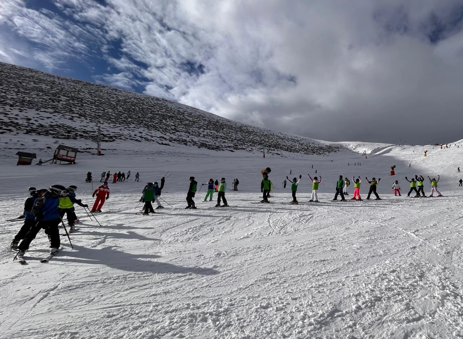 Les élèves sont arrivés vers 10h pour débuter une semaine dédiée au ski. Après l’installation, la récupération du matériel et le déjeuner, la première séance a commencé à 13h. Malgré des températures très froides, la journée s’est déroulée sans blessure et sur une neige de très bonne qualité.