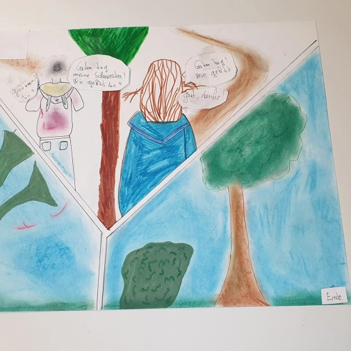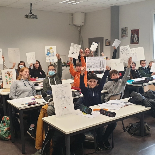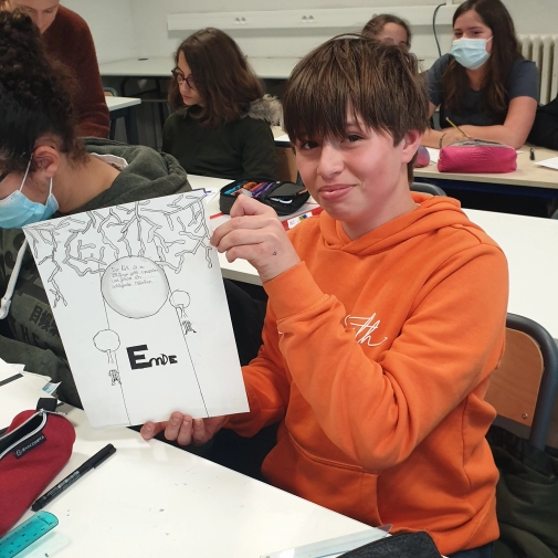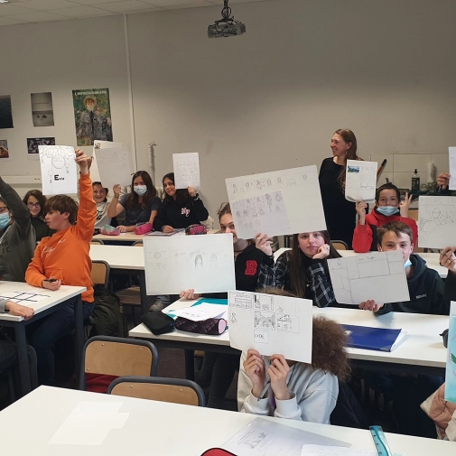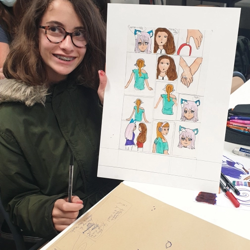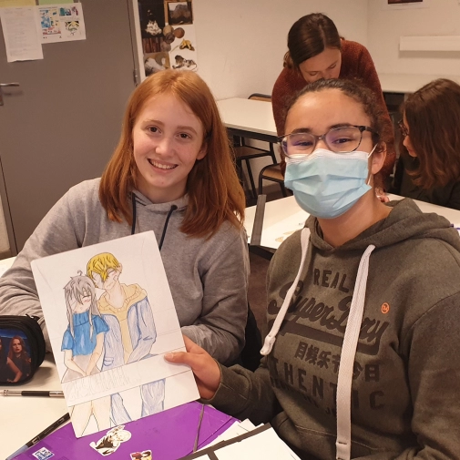 Dans le cadre de l'EPI (Enseignement Pratique Interdisciplinaire) en Arts Plastiques et Allemand, des élèves de 5èmes travaillent sur la création d'un manga en allemand.