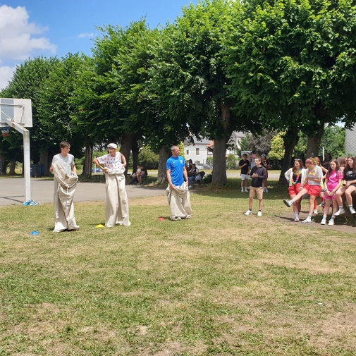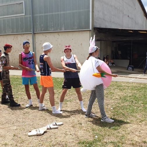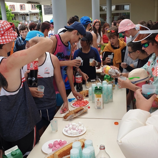 Dernier jour pour nos 3èmes : déguisements et festivités ! Danses, compétition de courses en sac, aux ballons, tir à la corde et ... petite surprise chantée pour dire au revoir à M. Bonnemaison, responsable du Collège et professeur de Mathématiques depuis de nombreuses années au Collège Pradeau-La Sède, qui part à la retraite. Une journée joyeuse finalisée par un goûter.