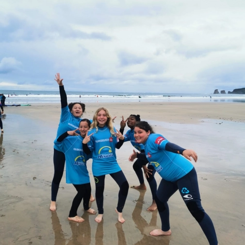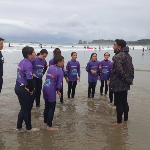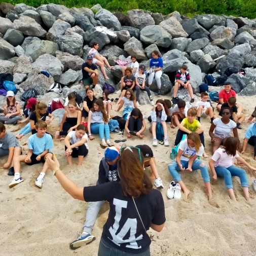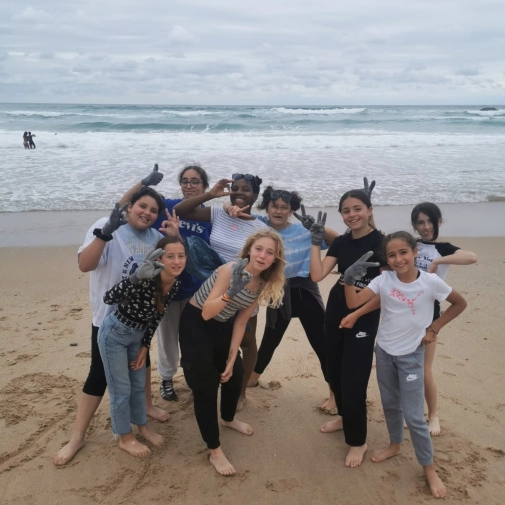 Jeux Force Basque, pique-nique à la plage, visite du campus surfrider de Biarritz, participation à une collecte de déchets sur les plages d’Anglet et soirée musicale.