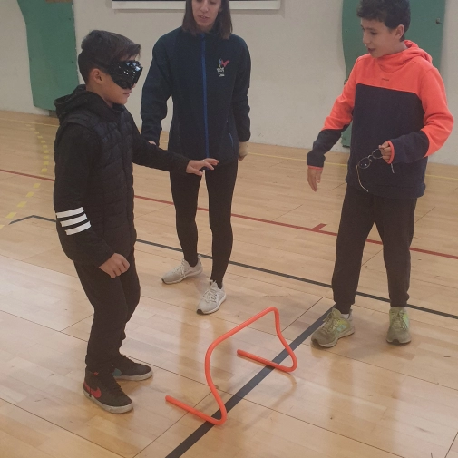 - Parcours pour les mal-voyants et non-voyants avec des lunettes adaptées et des ballons à clochettes