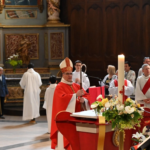 Dimanche 21 mai, 34 jeunes de 4ème et 3ème de Tarbes ont été confirmés en l'église Saint Jean par Monseigneur Micas.