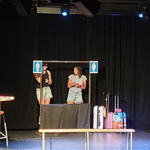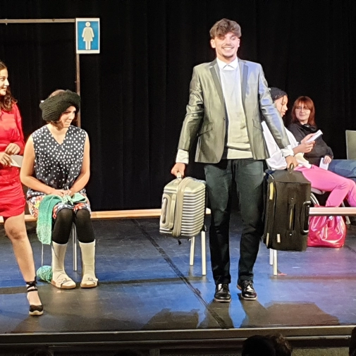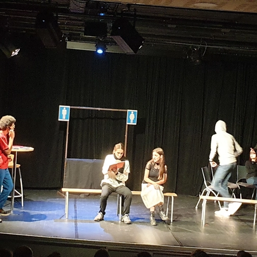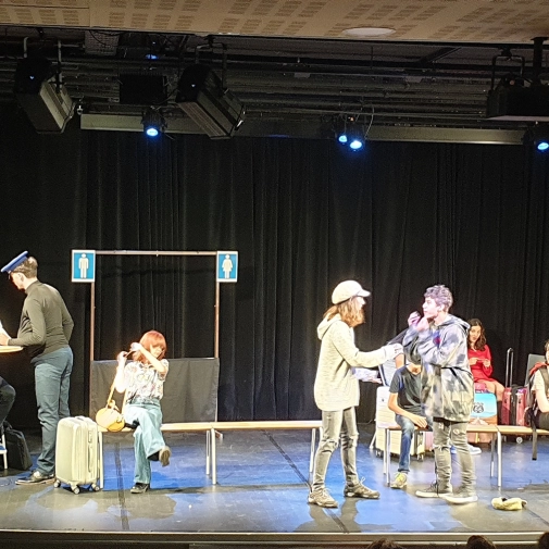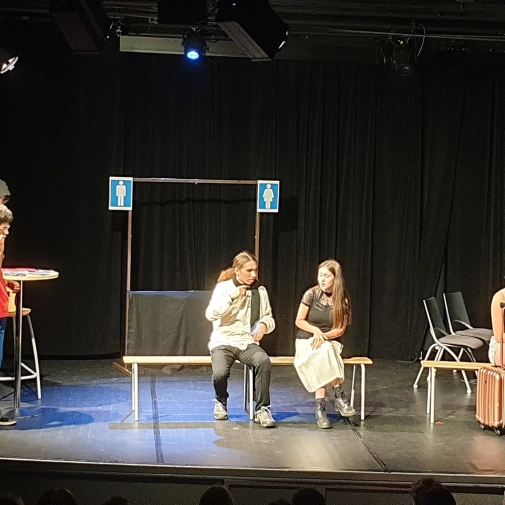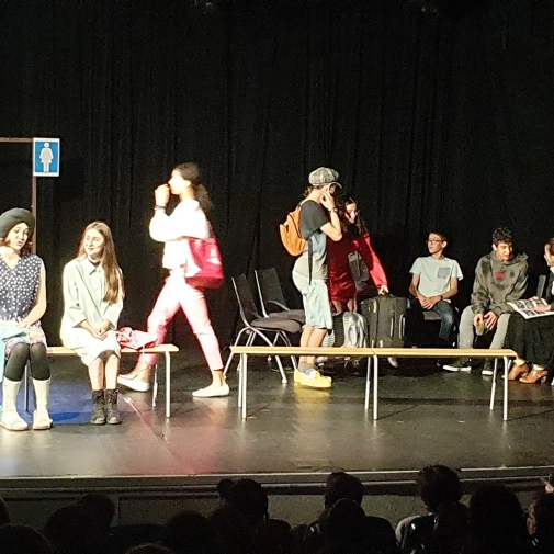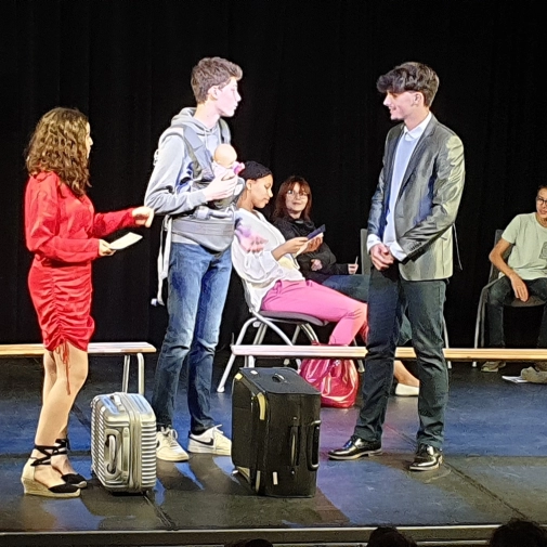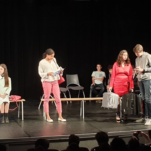 L'atelier théâtre composé d'élèves de 3ème et dirigé par Mme Nathalie Sauboua, enseignante de Lettres, nous a présenté “Dialogues en gare” à l'ECLA d'Aureilhan le mardi 6 juin 2023 à 20h30.