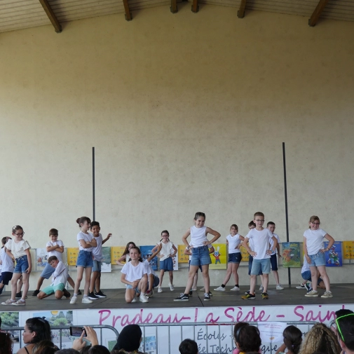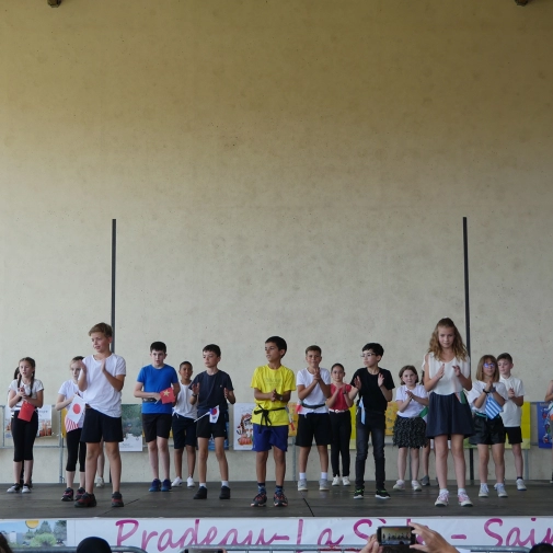 Chaque classe a présenté une danse, un joli spectacle, clôturé par la danse des maîtresses et maîtres et une jolie surprise (banda et cadeaux) pour dire au revoir à la directrice Nathalie Peyraga qui part à la retraite.