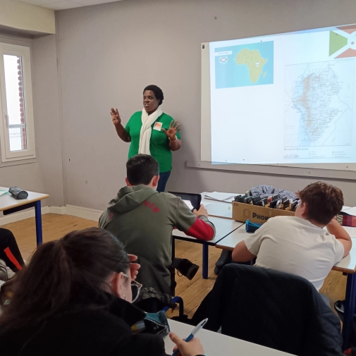 Dans le cadre d’un cours de géographie, la classe de 2nde B a reçu Marie-Reine Ndoricimpa d’INADES Formation, partenaire du CCFD-Terre solidaire (Comité Catholique contre la faim et pour le développement) au Burundi