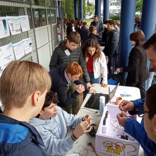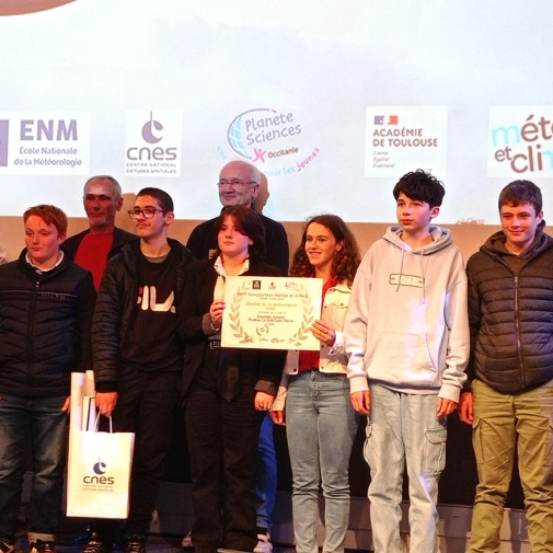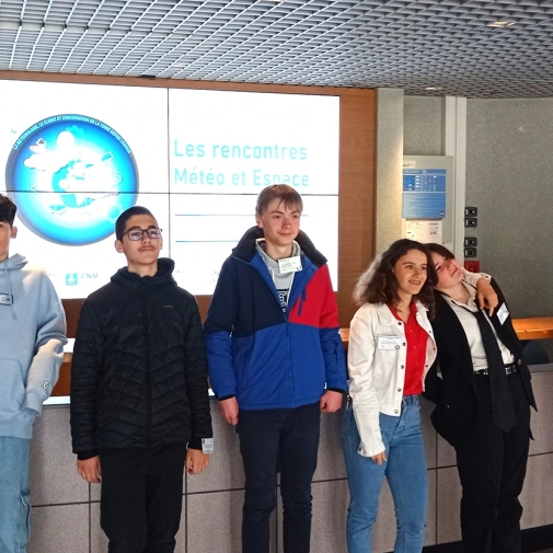 8 élèves de l'atelier ballon stratosphérique (Yaëlis, Lyna, Jules, Dylan, Nicolas, Lucas C., Lucas A., Yaël), en classe de 4e et 3e, ont participé aux 10èmes Rencontres Météo & Espace 2024, sur le site METEOPOLE (Météo France).