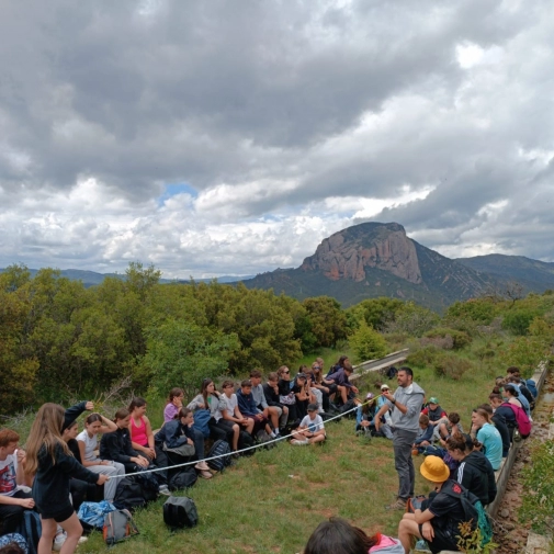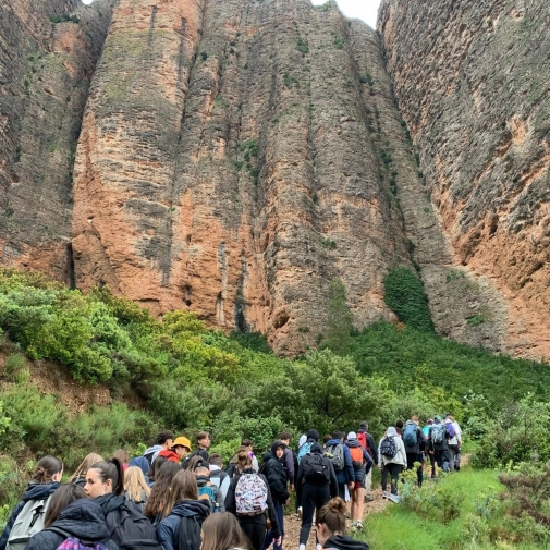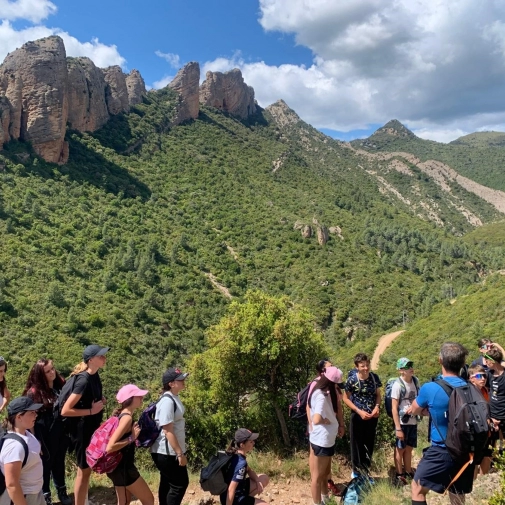 Explication de la formation géologique des Mallos de Riglos, montagnes mythiques d'escalade en Europe. Après-midi, jeu de piste dans le village de Riglos, sur le thème “Descubre la forma de vida”, suivi d'un goûter chocolate con churros.