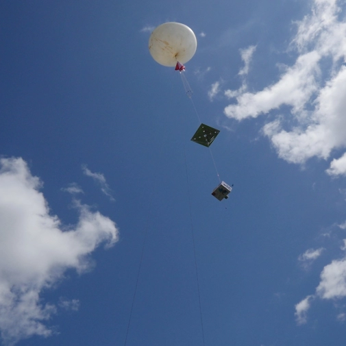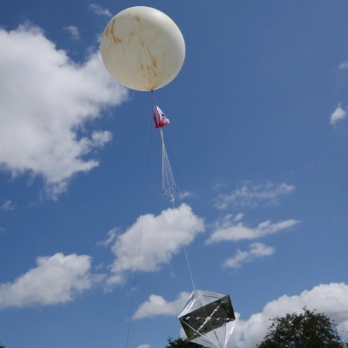 - Une caméra qui filme l’horizon et l’effet de la pression sur un ballon de baudruche à peine gonflé, accroché à la nacelle.