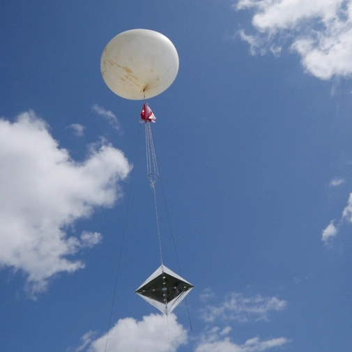 L’ensemble est composé d’un ballon, d’un parachute, d’un réflecteur et de la nacelle.