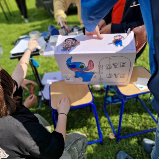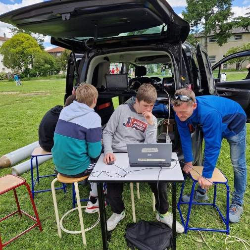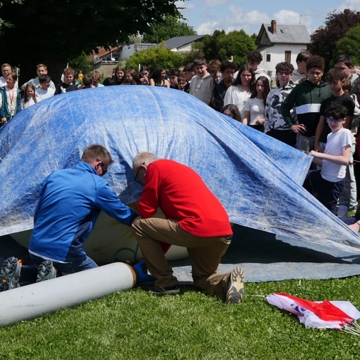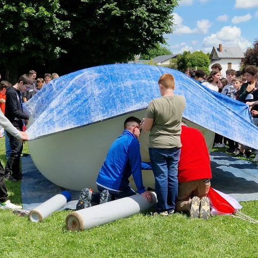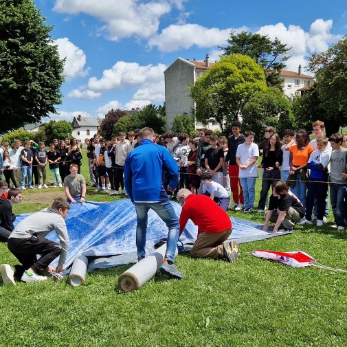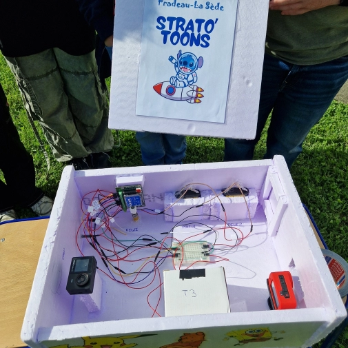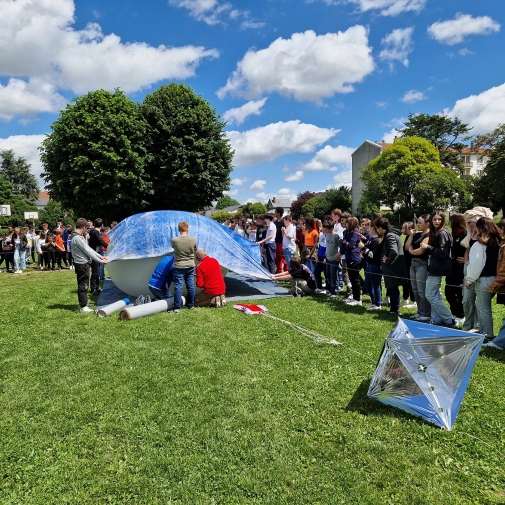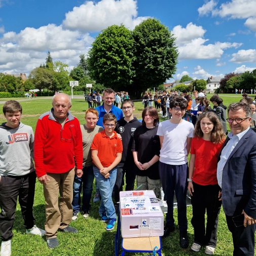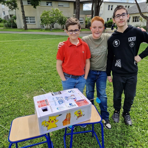 8 élèves de 4ème de 3ème, Dylan, Jules, Lucas A., Lucas C. , Lyna, Nicolas, Yaël et Yaëlis avec l’aide de Julien Monin et de Frédéric Gegot, professeurs de physique-chimie, ont travaillé sur le projet : un ballon pour l’école, depuis le début de l’année. Ce projet permet aux élèves de concevoir, fabriquer et faire décoller des expériences embarquées dans une nacelle (température, pression, vidéo, …), afin de les initier :