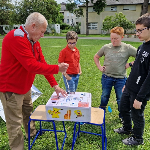Les élèves, très fiers et motivés, ont décrit la composition de la nacelle qu’ils ont conçu eux-mêmes.