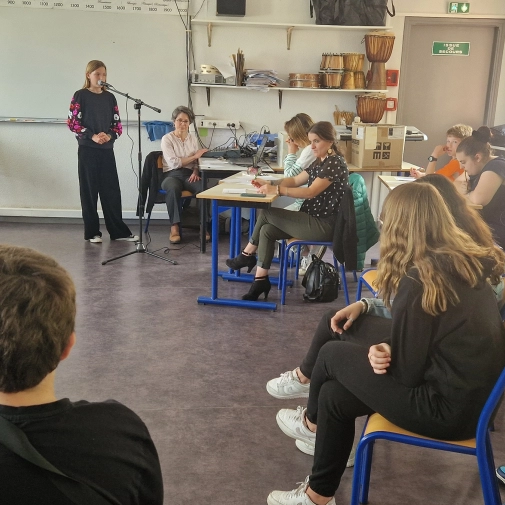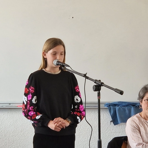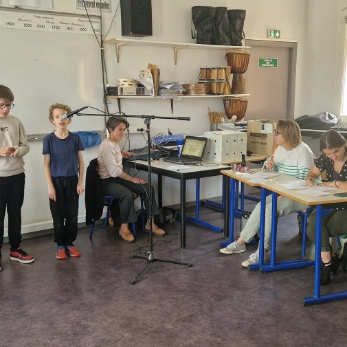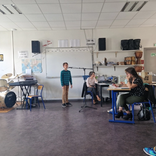 Félicitations à Anastasia (1er prix), Eva (2ème prix) et Léo (3ème prix) pour leur victoire au concours de chant du Collège Pradeau-La Sède ! Le concours était organisé par la professeure de musique Mme Gauthier, accompagnée de 2 membres du jury.