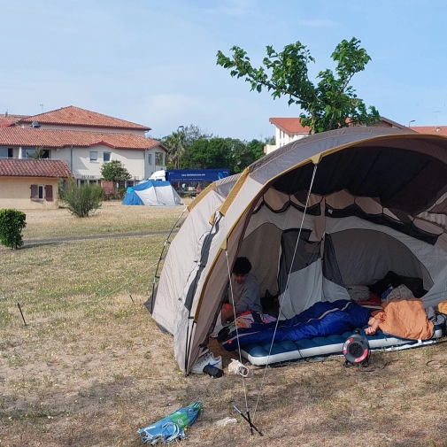 - Arrivée vers 16h au camping municipal de Vieux-Boucau, installation du campement.