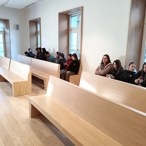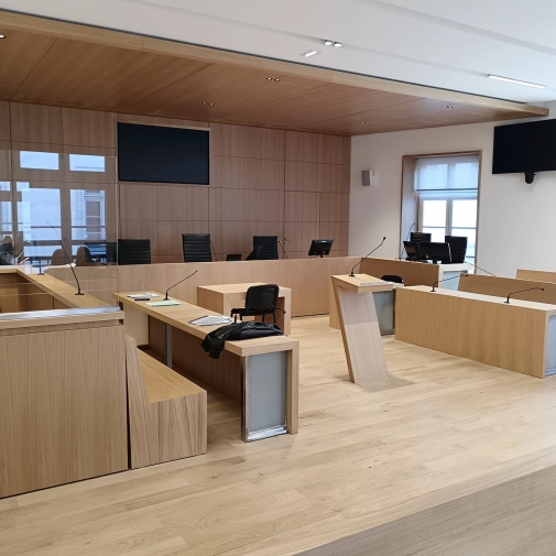 Au cours de cette matinée, les élèves ont pu mettre un peu plus de sens au vocabulaire de la justice et à son fonctionnement dans une salle de style très contemporain.