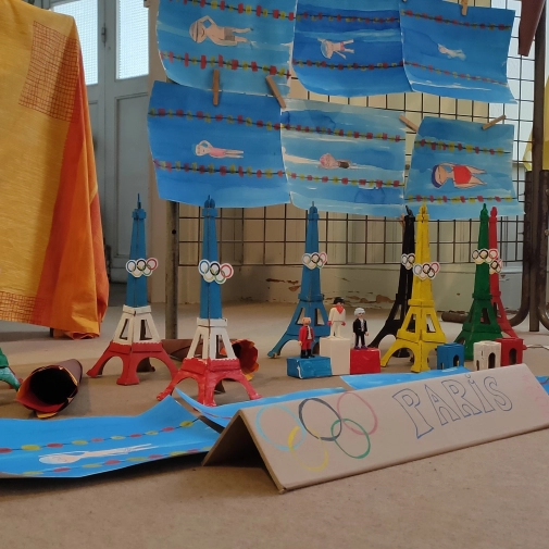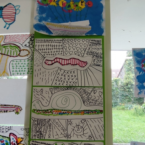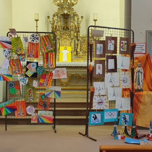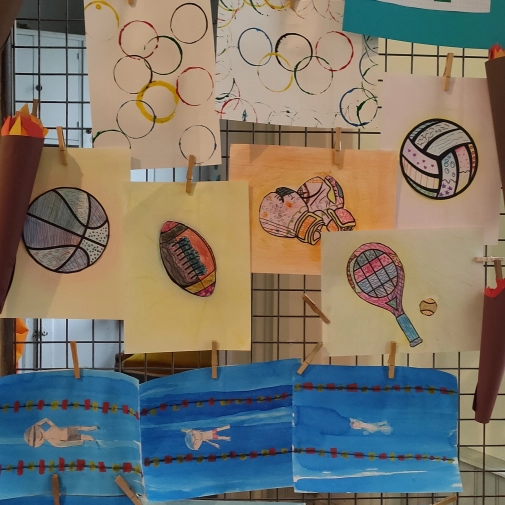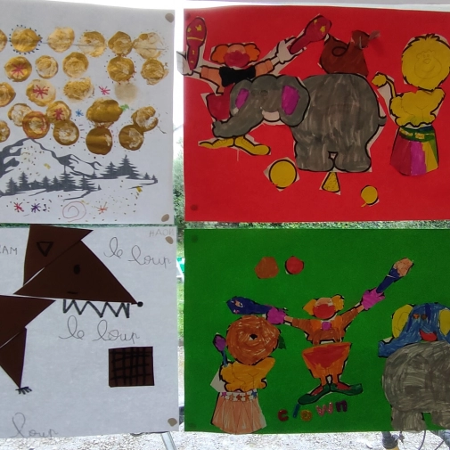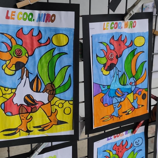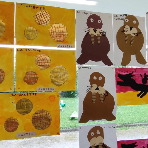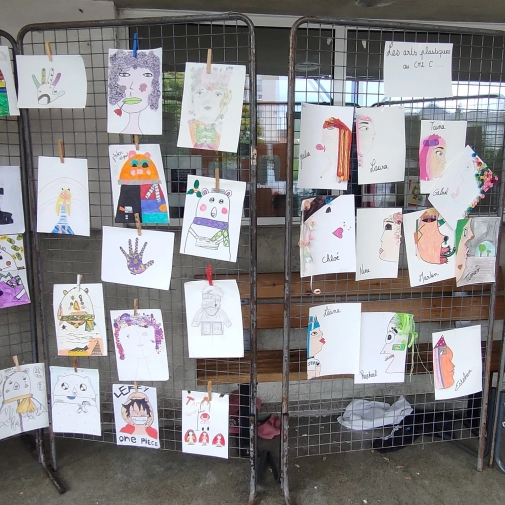 Une exposition de tous les travaux était installée dans la cour, cette semaine du 24 juin au 28 juin 2024, les élèves ont pu admirer le travail des autres classes.