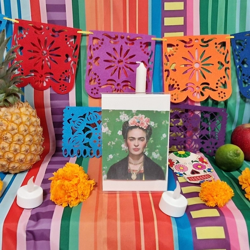 Ils ont réalisé cet autel (altar) au CDI afin d'honorer des artistes hispaniques décédés comme: Frida Kahlo, Pablo Picasso et Salvador Dalí.