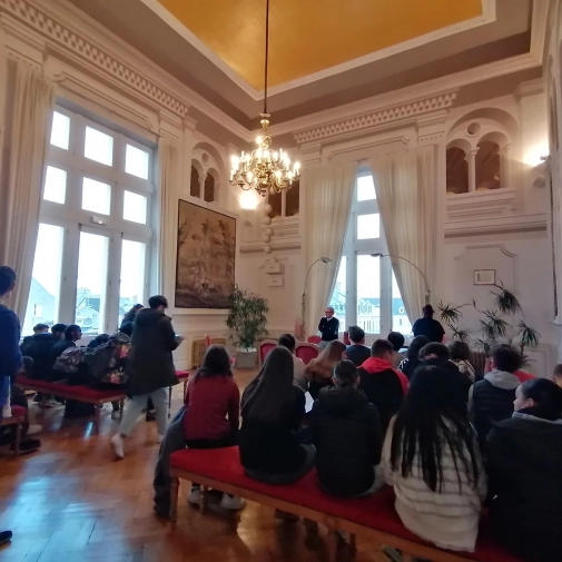 Les élèves ont été accueillis dans la salle du conseil et ont visité la salle de mariage et vu la salle des fêtes.