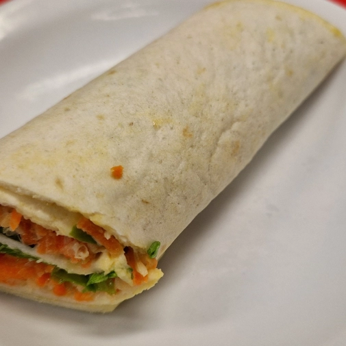 Installés à table comme au restaurant, Elior a servi un Wrap Coleslaw (de crudités) en entrée, une Lasagne au saumon et poireaux puis un Riz curry, petit pois et fèves en plats. Pour finir, un Pain perdu sauce praliné et une Mousse Stracciatella (dessert végétal très léger).