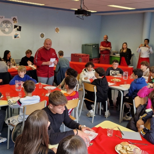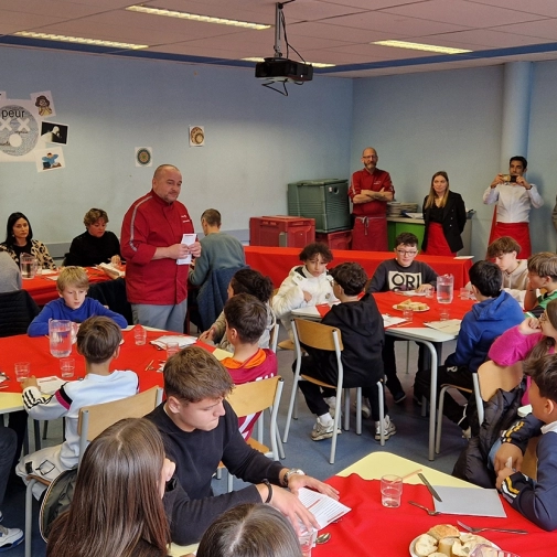 Trente élèves et douze adultes étaient conviés ce mardi 26 novembre 2024, pour une séance de dégustation « Elior », notre prestataire de restauration.