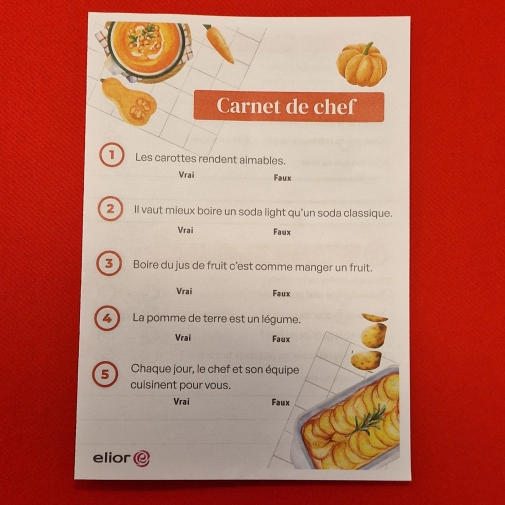 Les résultats de l’enquête seront affichés à la cantine et s’ils sont satisfaisants, nous retrouverons certaines de ces recettes originales et créatives sur les menus des établissements scolaires gérés par le groupe Elior.