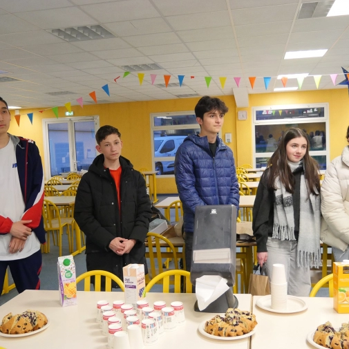 Ce mardi 3 décembre, l'établissement a convié ses élèves étrangers, les familles d'accueil, Mme Dos Santos ainsi que certains professeurs à une rencontre autour d'un pot d'accueil. Ce fut l'occasion d'échanger sur leurs expériences et de leur remettre un petit souvenir.