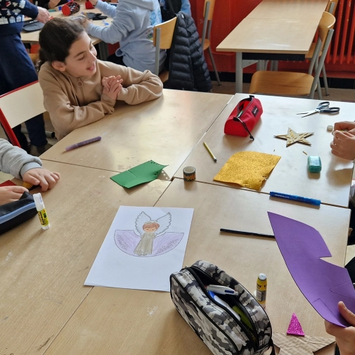 Les élèves ont été invités à créer des décorations et à préparer des cartes de vœux qui seront offertes à la sortie de la messe du 19 décembre, à 13h, à la chapelle de la Sède.