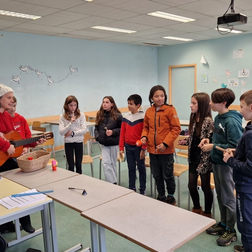 Chaque groupe a suivi un parcours de 4 ateliers animés par des professeurs et des personnels du collège. Le but était de redécouvrir l’esprit de Noël grâce à des chants ou des histoires.