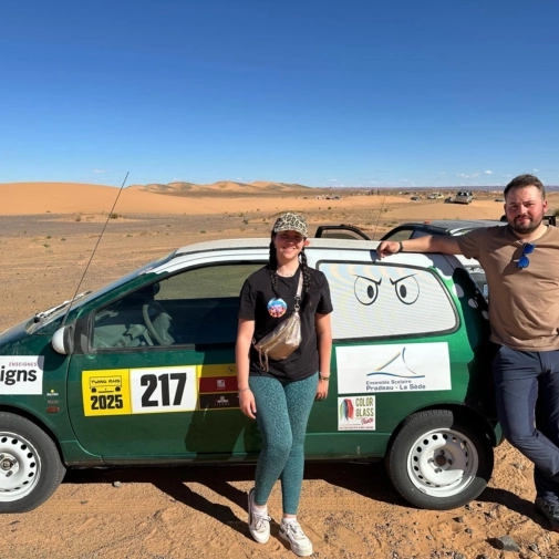Après le succès du 4L Trophy, nous avons fièrement suivi Carla Dhugues et son compagnon Alexis Barrere dans leur incroyable participation au Twing Raid 2025. Ils sont partis le 25 février de Saint-Sébastien, en Espagne, et ont atteint Marrakech le 4 mars après un périple de près de 4000 km en Twingo !