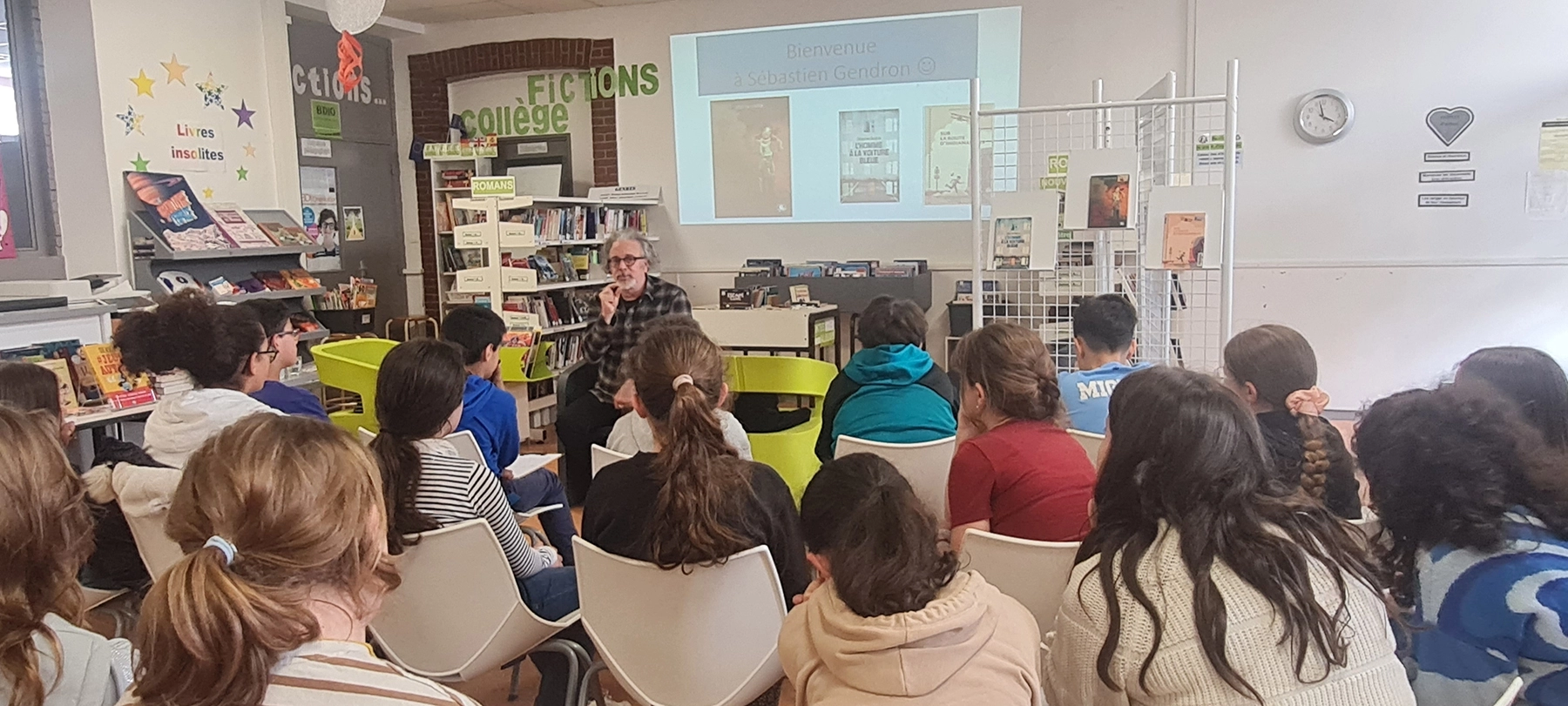 Une rencontre chaleureuse et instructive avec Sébastien Gendron ce mardi 13 mai, au CDI.