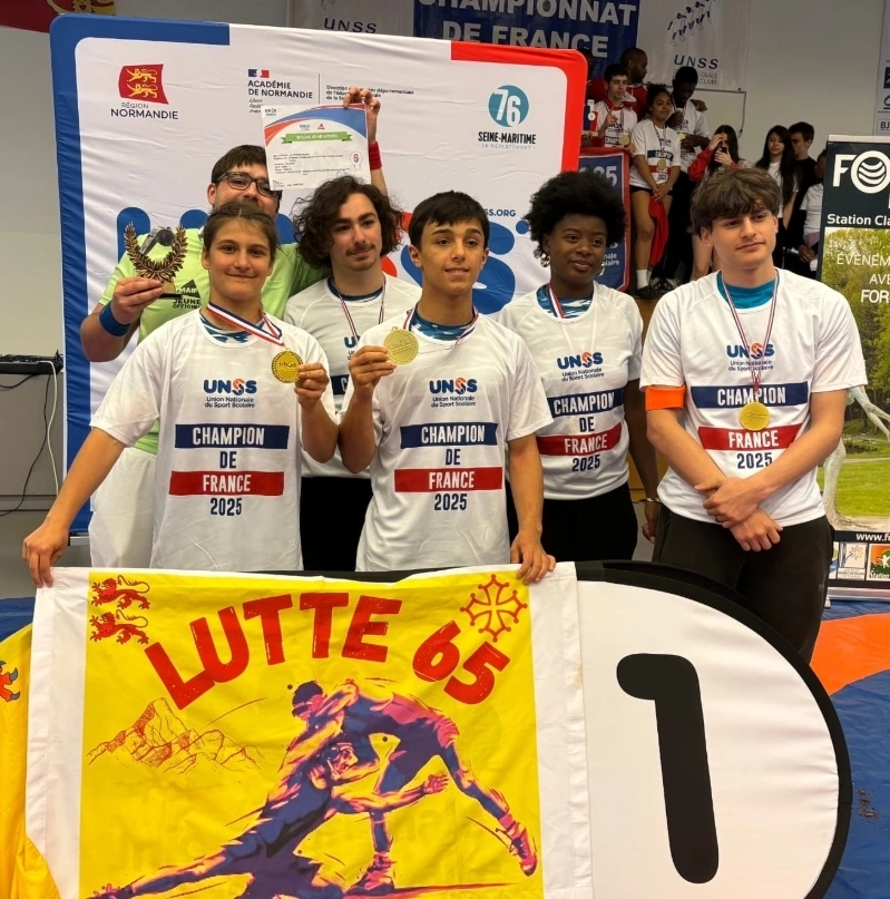Le 28/05/25, après les exploits des filles en 3x3 Basket, l'équipe de lutte de Pradeau-La Sède - Saint-Pierre est revenue de Normandie avec un titre de CHAMPION DE FRANCE.