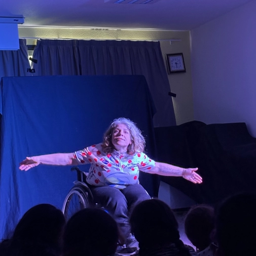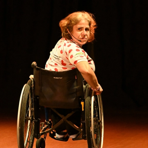 Virginie Castaingt, en fauteuil roulant, y met en scène son propre témoignage, accompagnée d’un régisseur et d’un metteur en scène professionnels. À travers cette performance, elle aborde des thèmes essentiels tels que le handicap, le regard porté sur l’autre et la résilience.