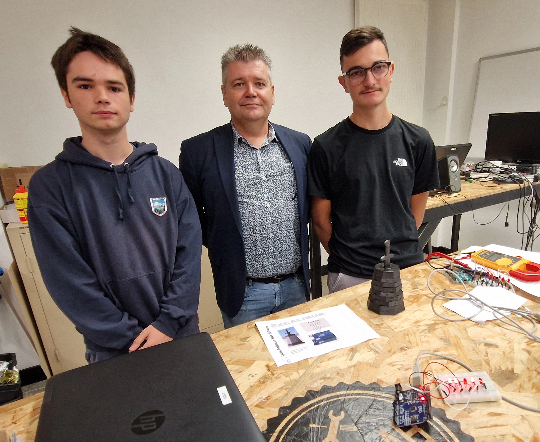 Le code d’Excalibur Dans une aventure inspirée de la légende du roi Arthur, les élèves ont été invités à libérer l’épée magique Excalibur en déchiffrant un message codé. Grâce à une carte Arduino et des diodes lumineuses, ils ont reçu un signal en code binaire. À l’aide d’un tableau de correspondance binaire/alphabet, ils ont traduit le message et découvert le mot-clé pour devenir roi. Une initiation ludique à la programmation et au langage informatique.