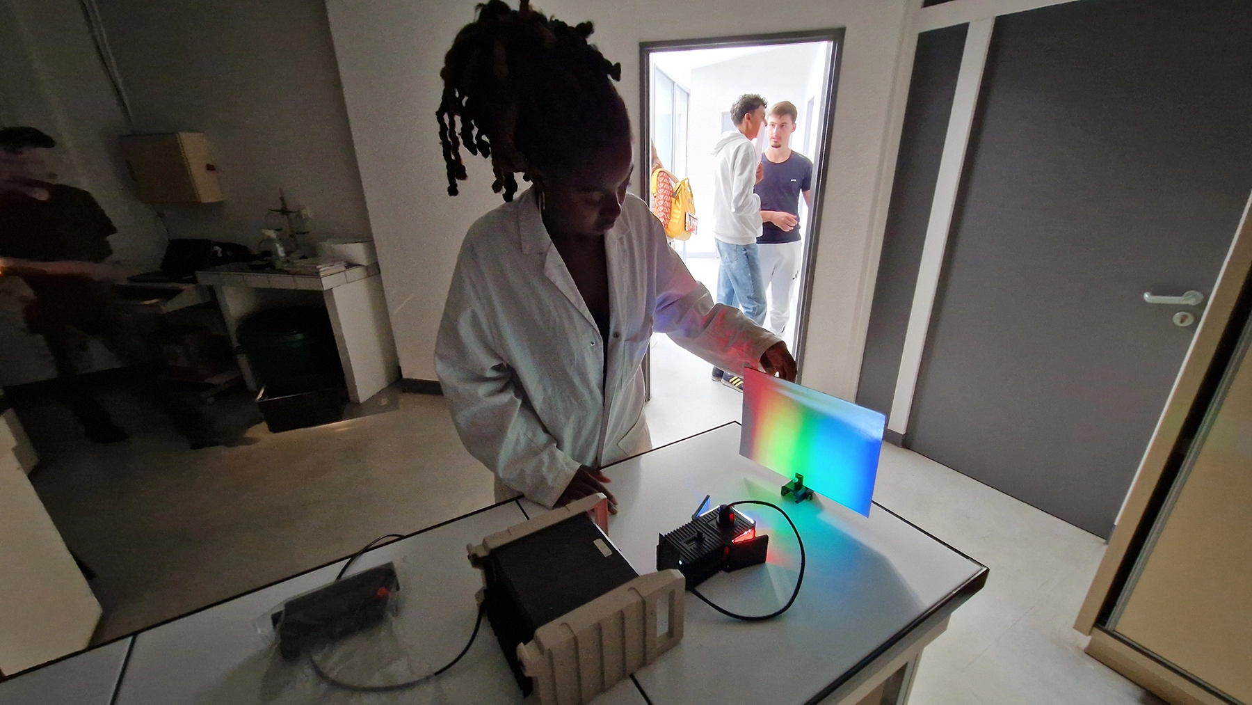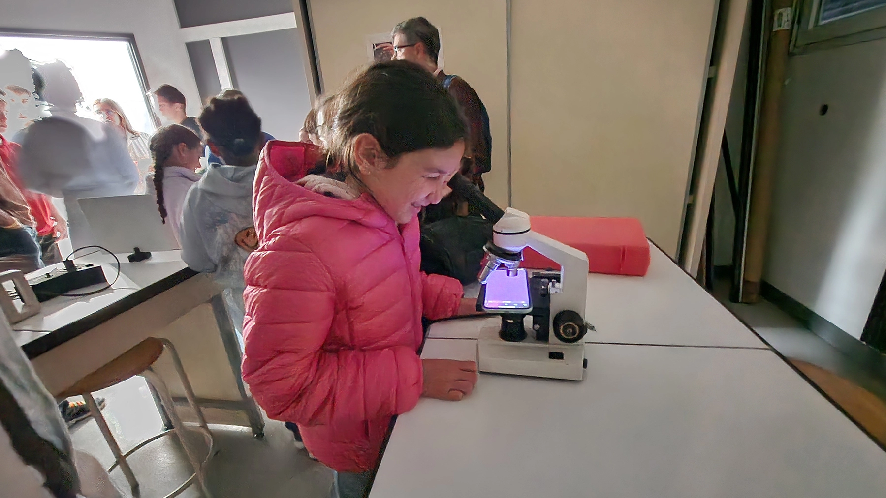 Microscope et pixels En observant un écran de smartphone à travers un microscope, les élèves ont découvert que chaque image est composée de minuscules lumières rouges, vertes et bleues. Ils ont ainsi compris le principe de la synthèse additive des couleurs, utilisée dans tous les écrans numériques.