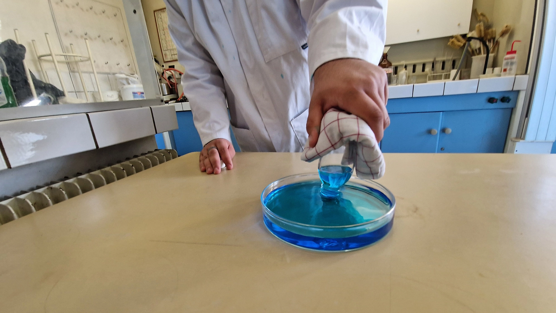 Précipités métalliques En ajoutant de la soude à des solutions contenant des ions de cuivre ou de fer, les élèves ont vu apparaître des précipités colorés : bleu pour le cuivre, vert ou brun pour le fer. Chaque couleur permet d’identifier le métal présent.