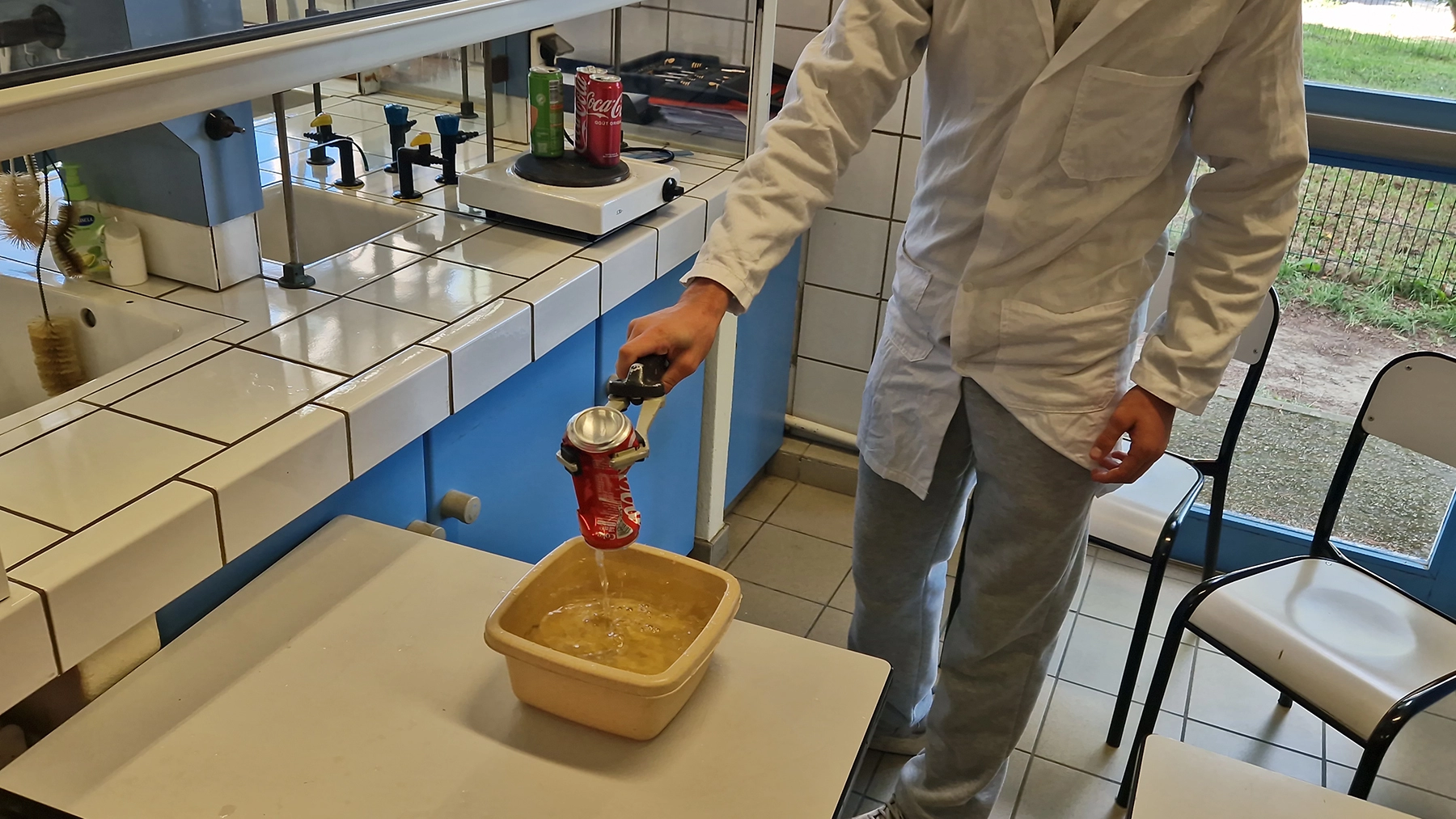 Coloration du jus de chou rouge En ajoutant du citron, du vinaigre, de la Javel ou du bicarbonate au jus de chou rouge, les élèves ont observé des changements de couleur selon le pH : rose en milieu acide, vert ou bleu en milieu basique. Une façon amusante de tester l’acidité des produits du quotidien.