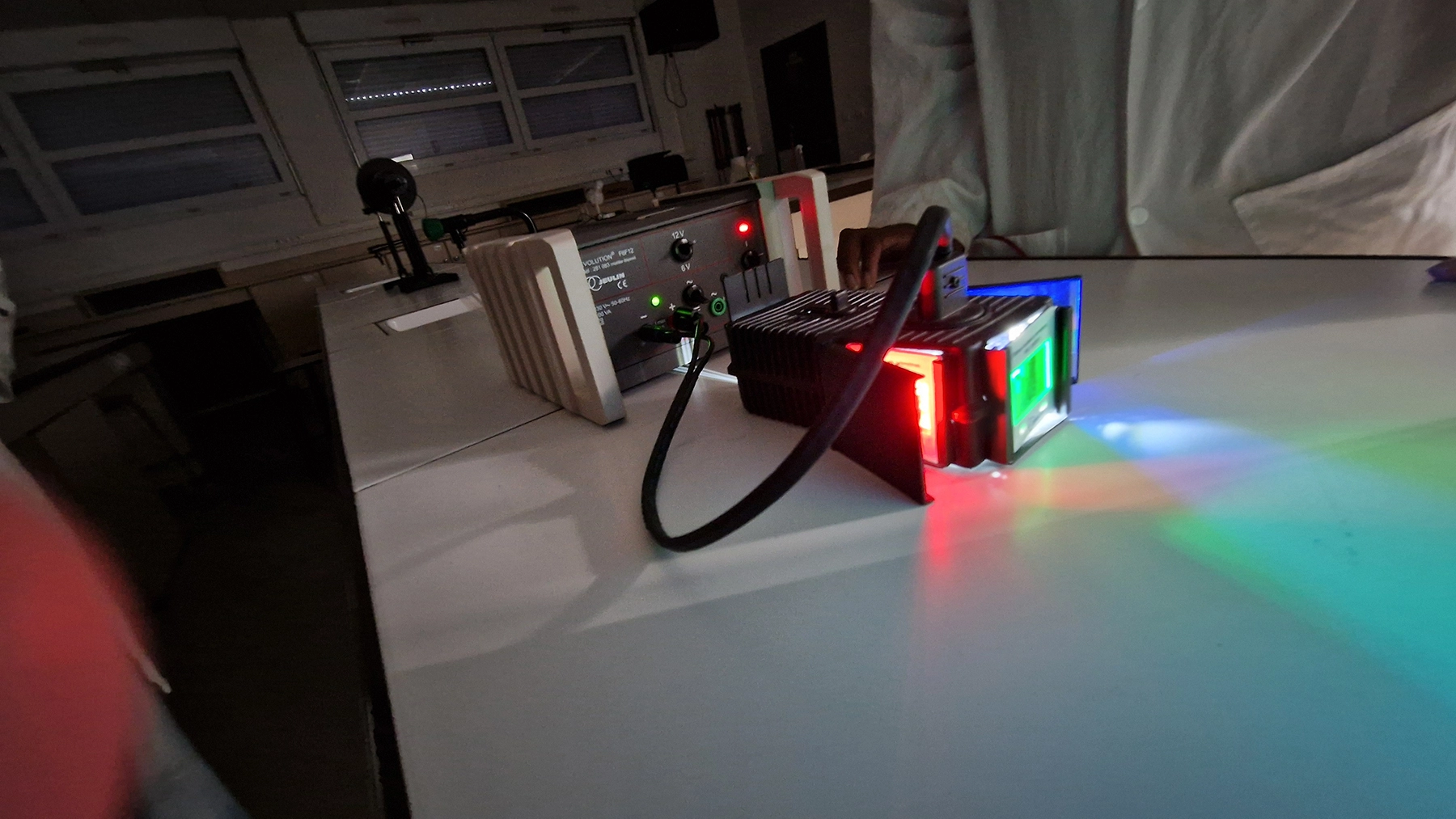 Mélange de couleurs En superposant des filtres colorés dans un projecteur, les élèves ont observé la création de nouvelles couleurs. Par exemple, le rouge et le vert donnent du jaune. Une belle illustration du mélange des lumières.