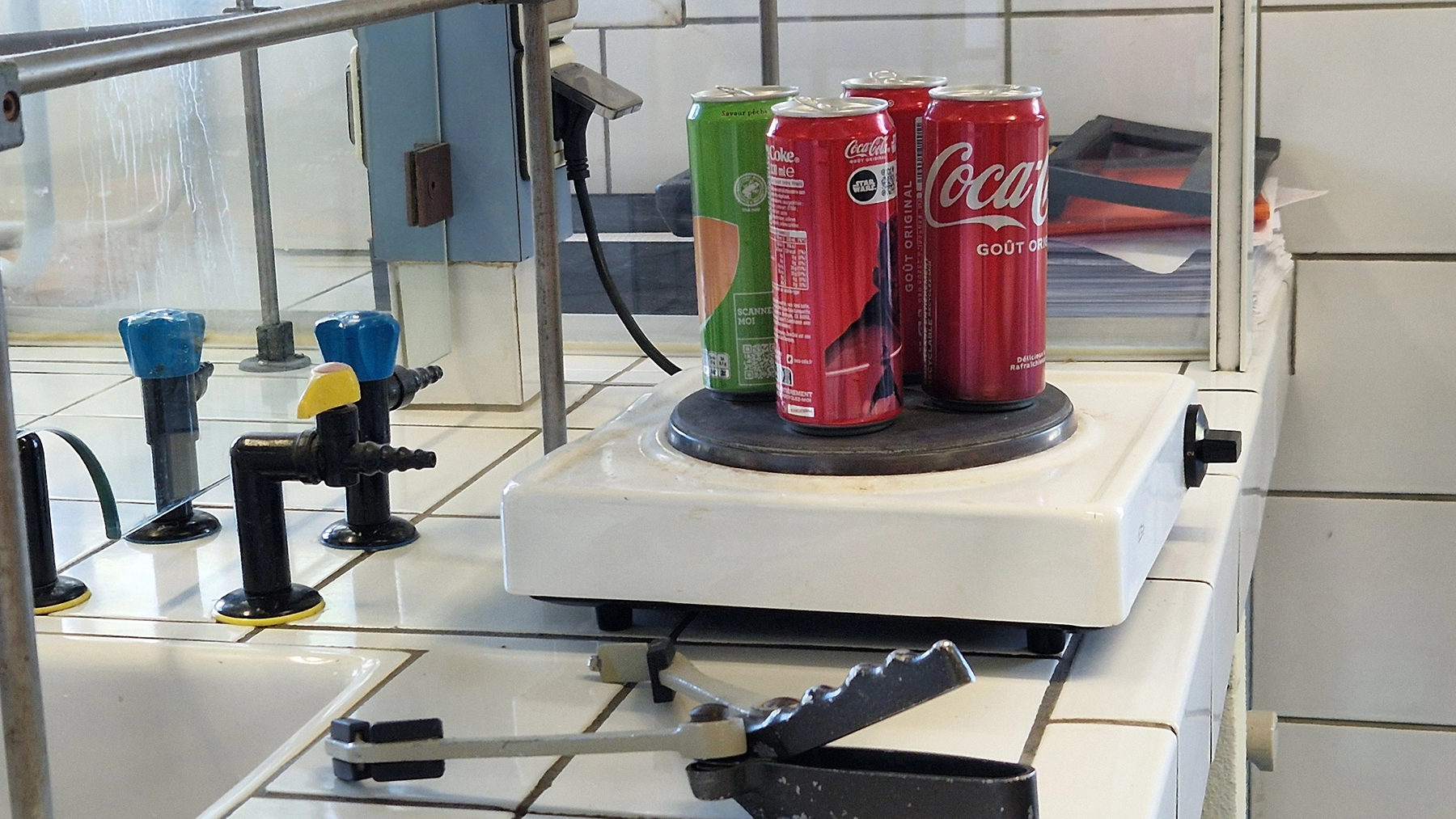 Implosion d’une canette Une canette chauffée puis retournée dans de l’eau glacée implose à cause de la condensation de la vapeur et de la différence de pression entre l’intérieur et l’extérieur.