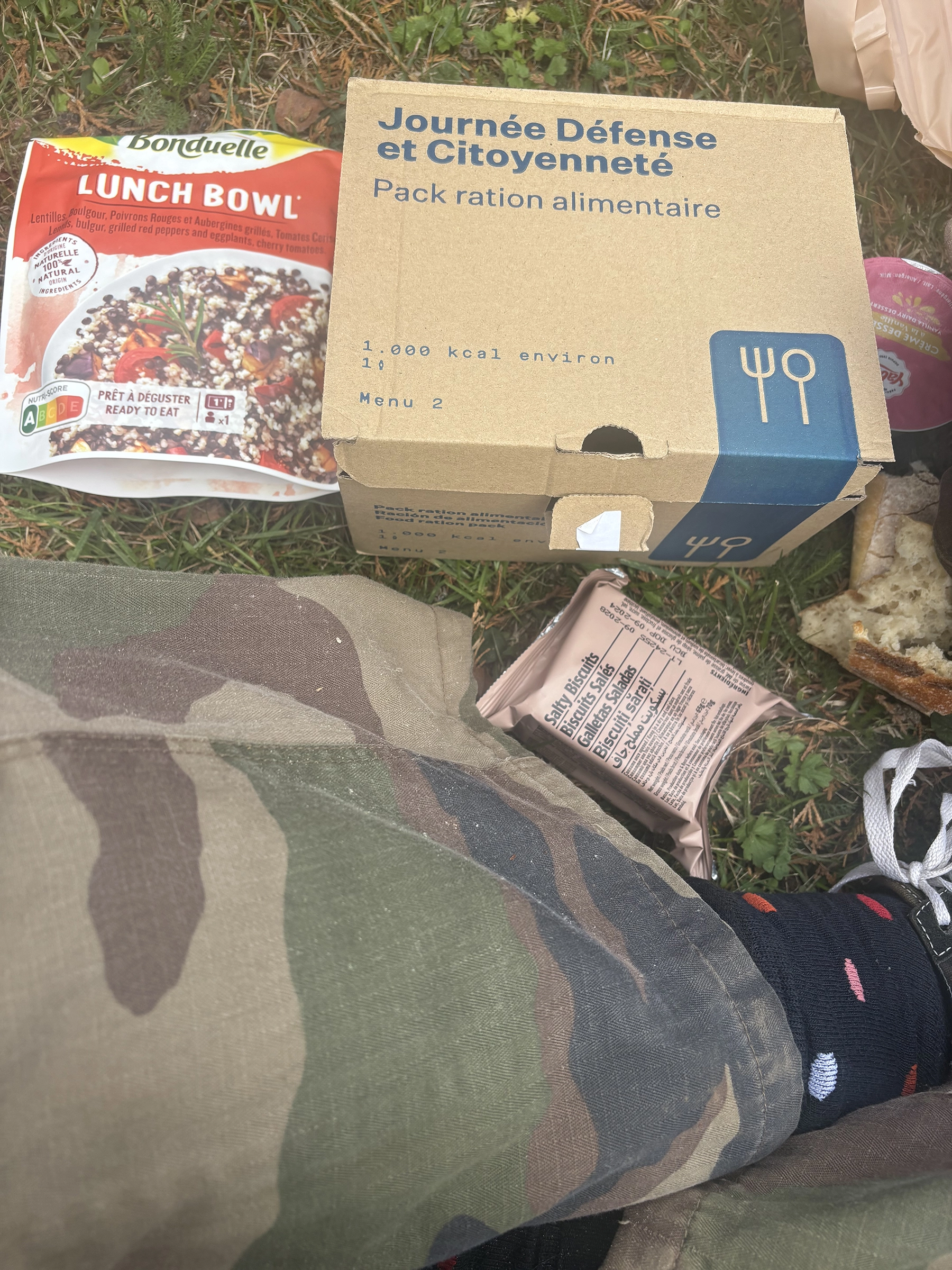 - 12h00 – 13h15 : Pause déjeuner (ration militaire)