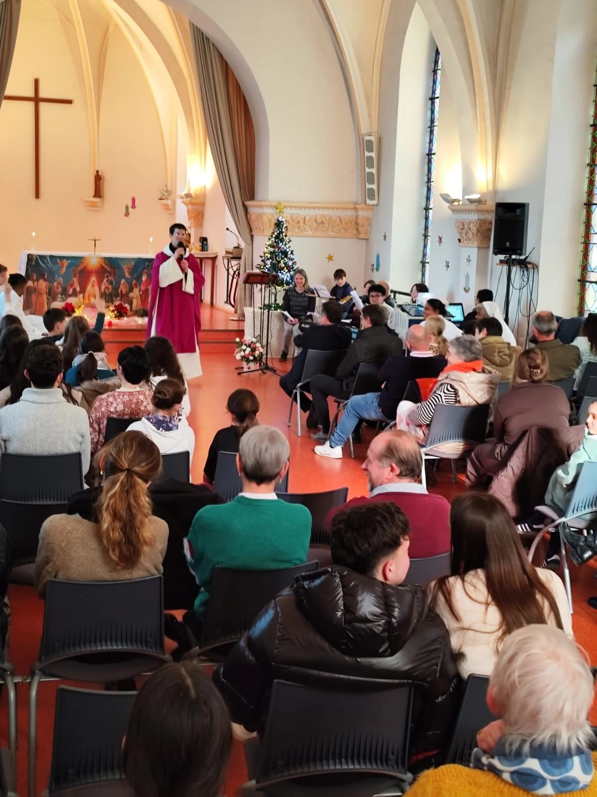 La messe de Noël s’est tenue à la chapelle le 19 décembre 2025 à 13h, en présence du père François‑Xavier. Dans son prêche, il a invité chacun à vivre la solidarité au quotidien, en la comparant à l’esprit d’équipe propre au rugby. Il a même cité Antoine Dupont, rappelant que, comme sur un terrain, « on n’avance pas tout seul », et que cette dynamique collective est tout aussi essentielle au sein de l’Église.