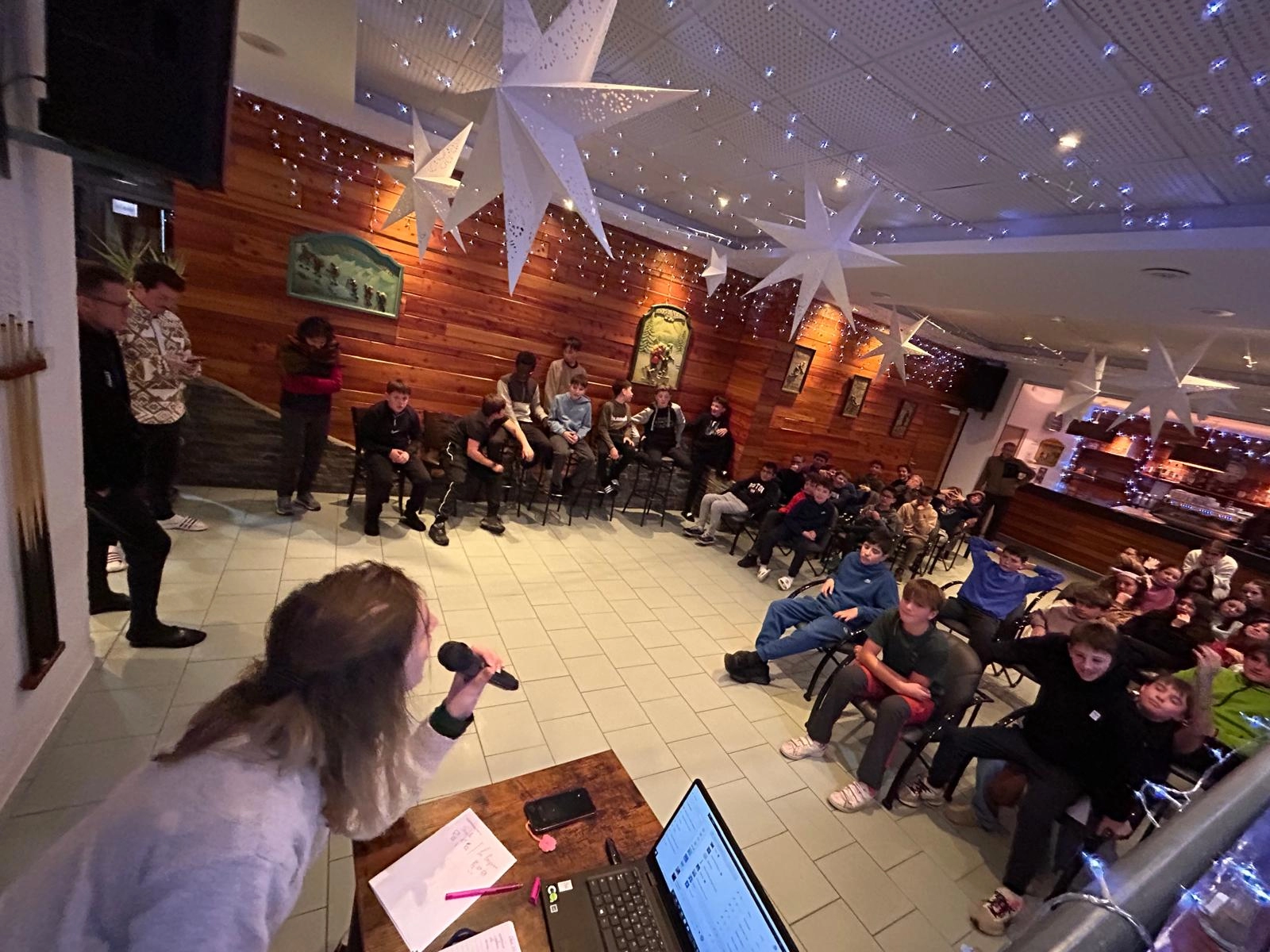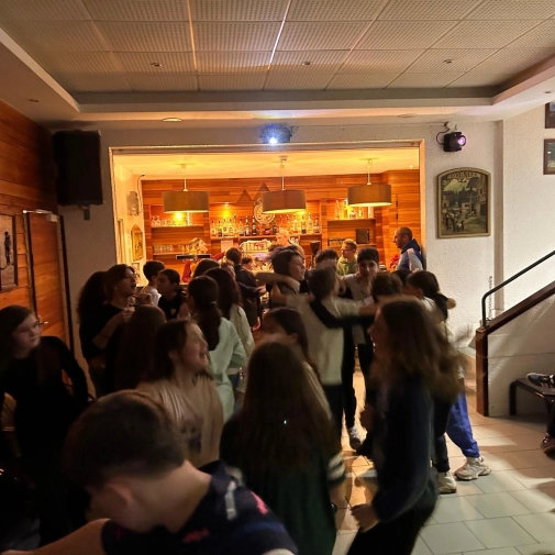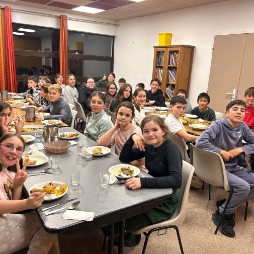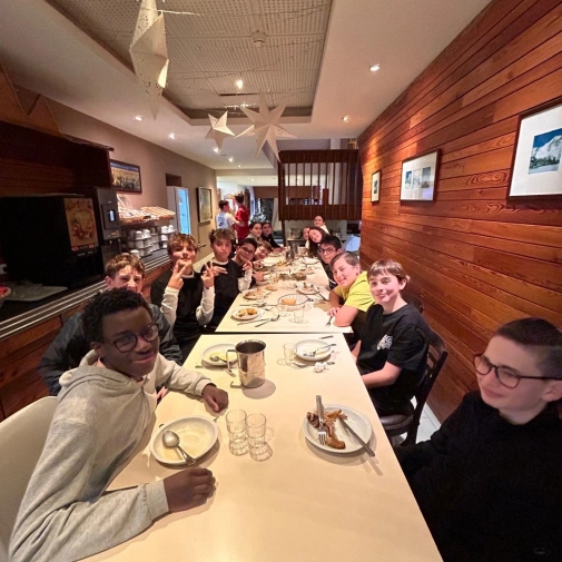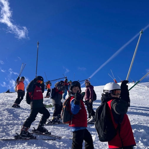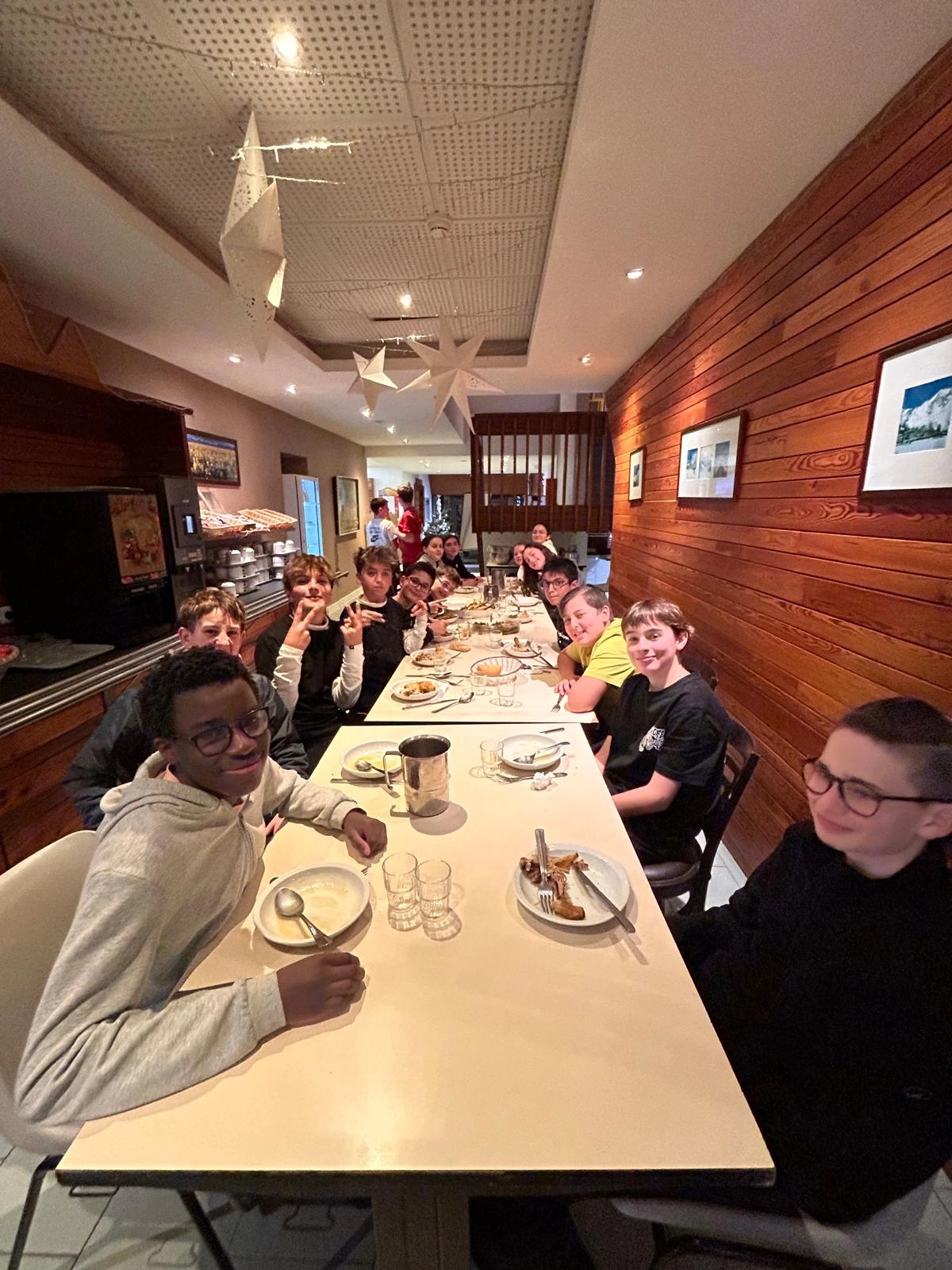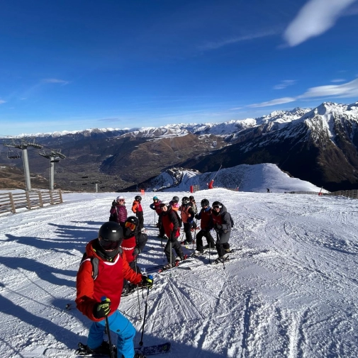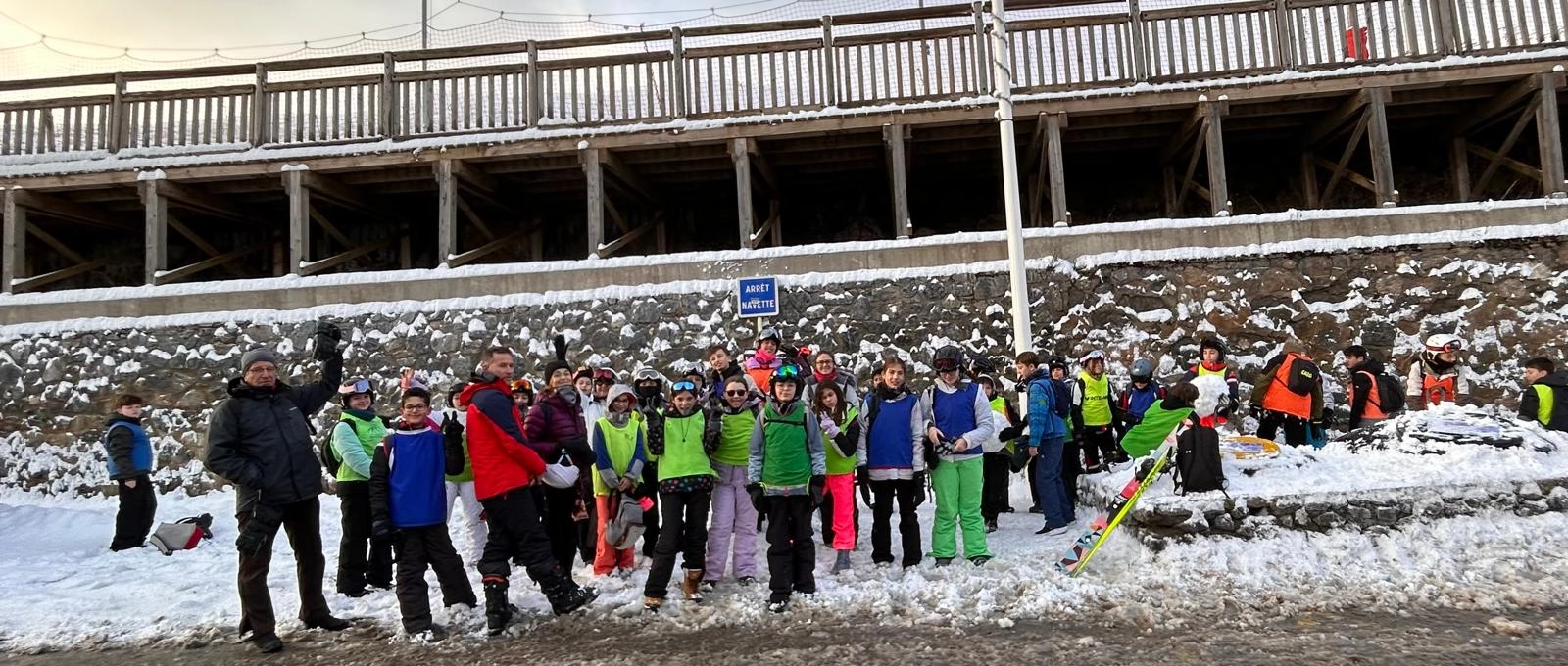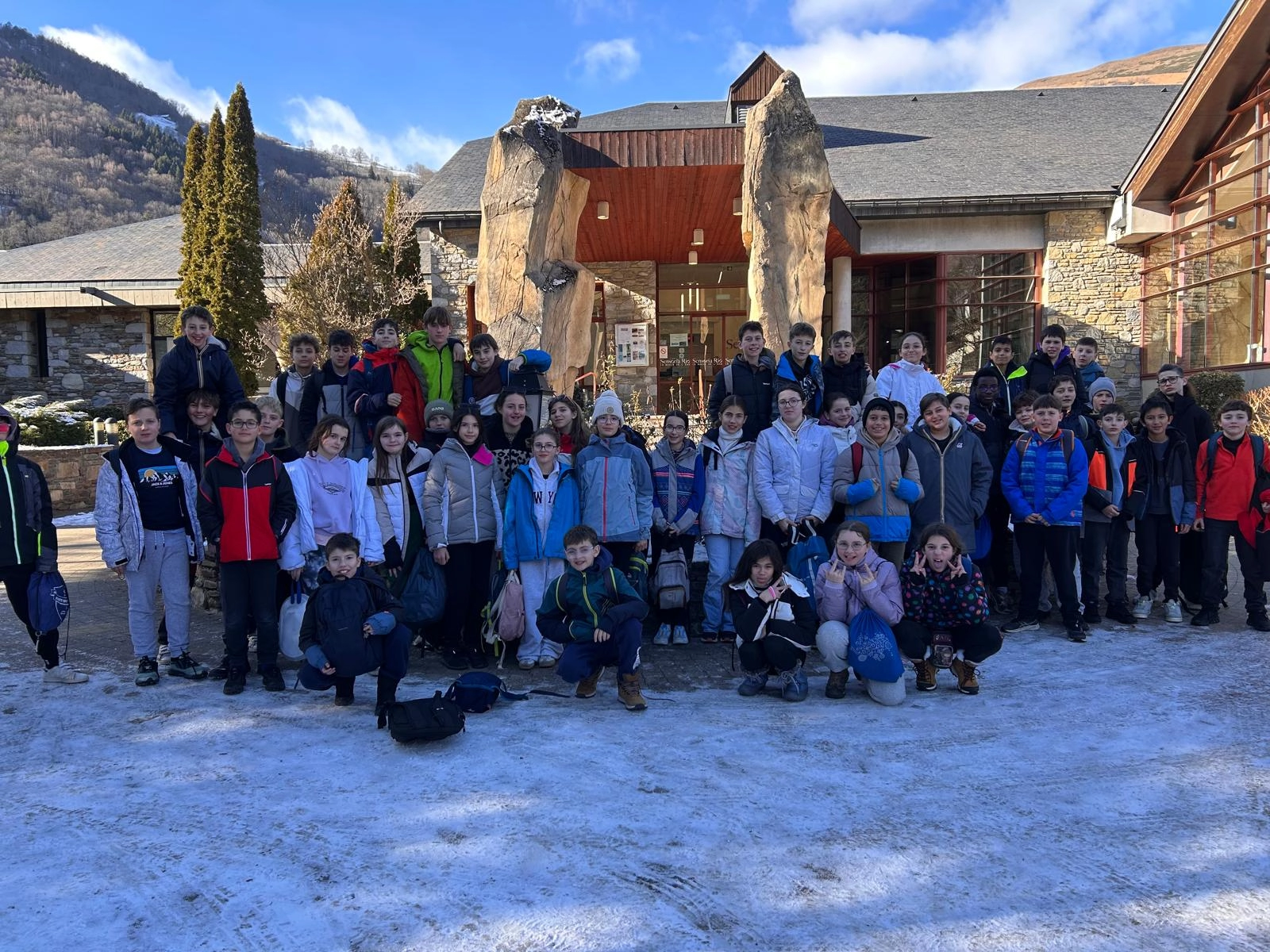 La neige tombée dans la nuit a offert un paysage féerique au réveil. Hier soir, les élèves ont participé à un blind test très animé. Ce matin, l’ambiance était givrée à l’arrêt de bus, avant une nouvelle journée dynamique sur les pistes. Le soir, place à une tartiflette suivie d’une soirée “boom” pour clôturer la journée en beauté.