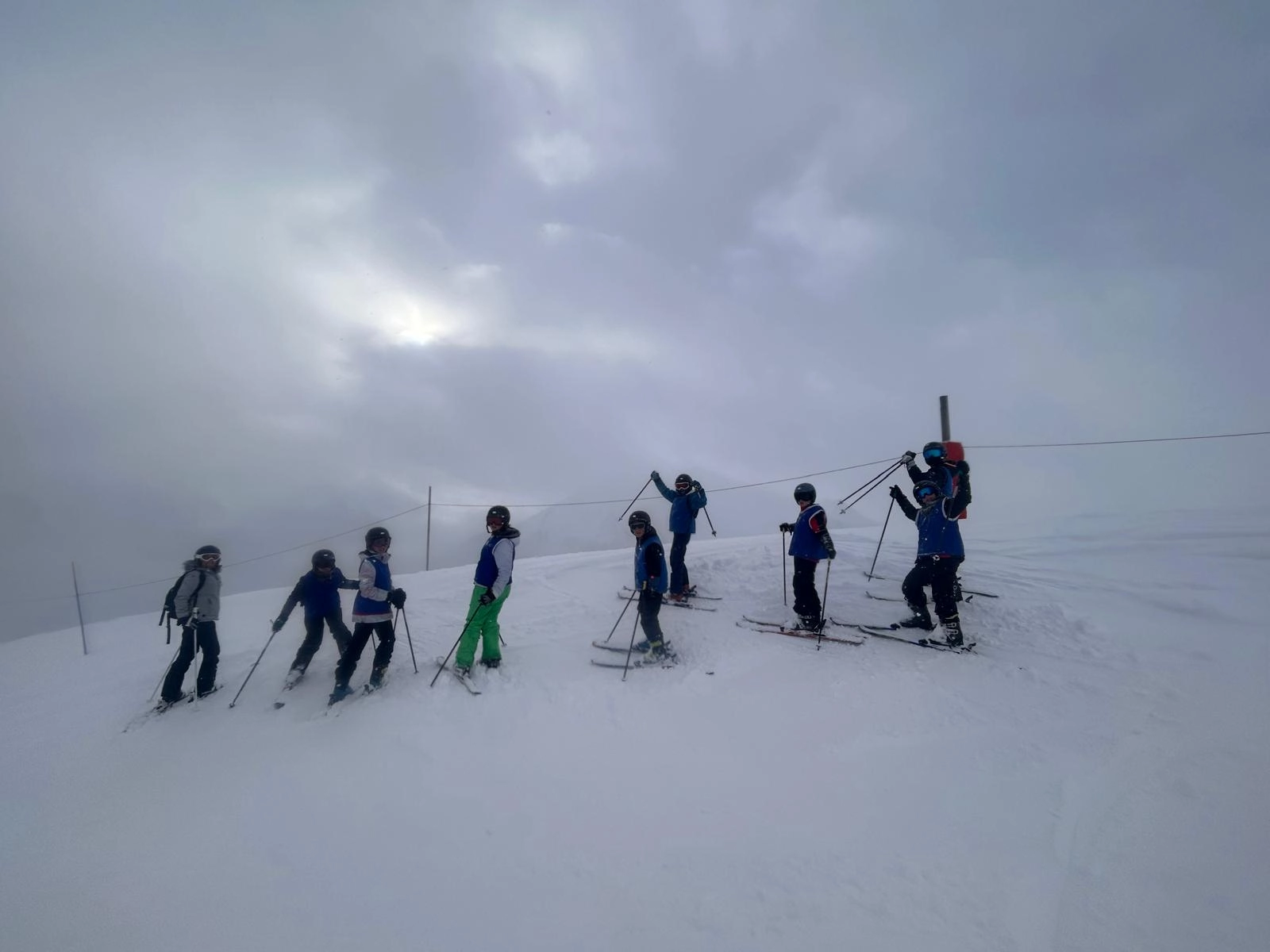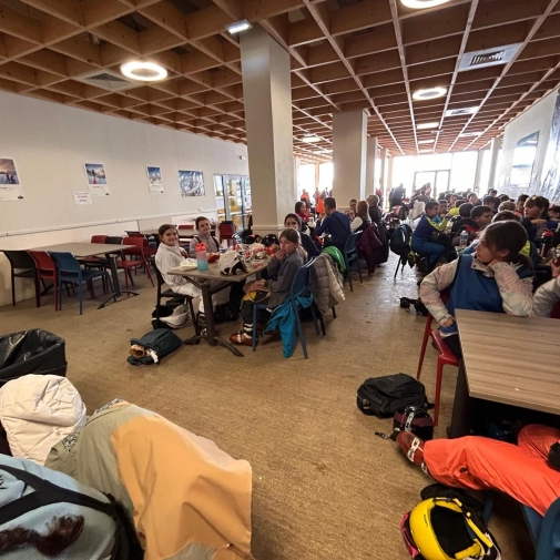La soirée de la veille s’est terminée par une dernière boom pour célébrer la fin du séjour. Ce matin, les élèves ont profité d’une poudreuse idéale, avant que le brouillard ne s’installe progressivement. Le groupe est désormais sur le chemin du retour, avec une arrivée prévue vers 16h.