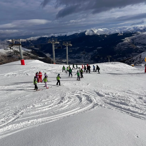 Les élèves sont arrivés vers 10h pour débuter une semaine dédiée au ski. Après l’installation, la récupération du matériel et le déjeuner, la première séance a commencé à 13h. Malgré des températures très froides, la journée s’est déroulée sans blessure et sur une neige de très bonne qualité.