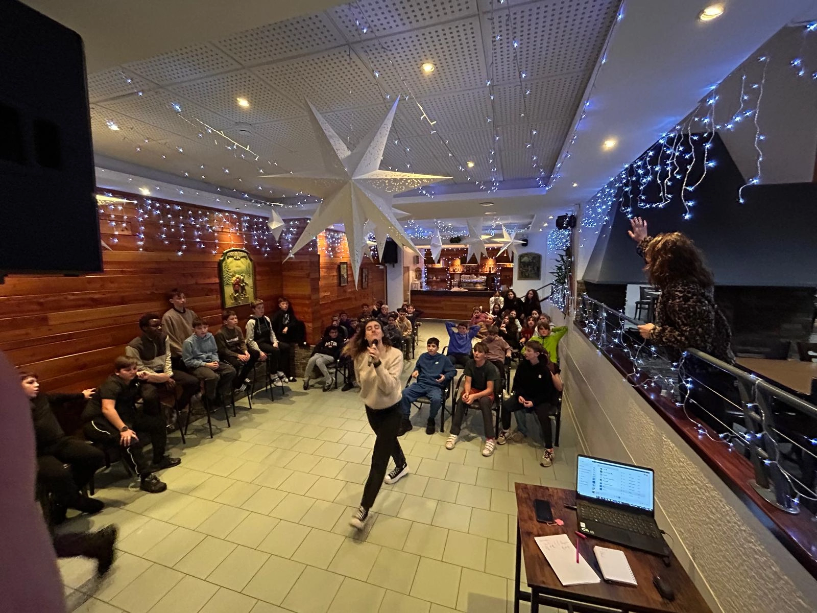 La veille au soir, un anniversaire a été fêté dans la bonne humeur. Au petit matin, les élèves ont pu admirer une lune parfaitement alignée avec la remontée mécanique. Après une excellente séance de ski, l’après‑midi a été consacrée à un moment de détente en thalassothérapie. La soirée a permis un temps libre dans le village avant un retour à l’hébergement vers 18h.