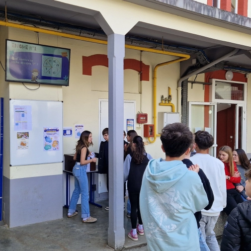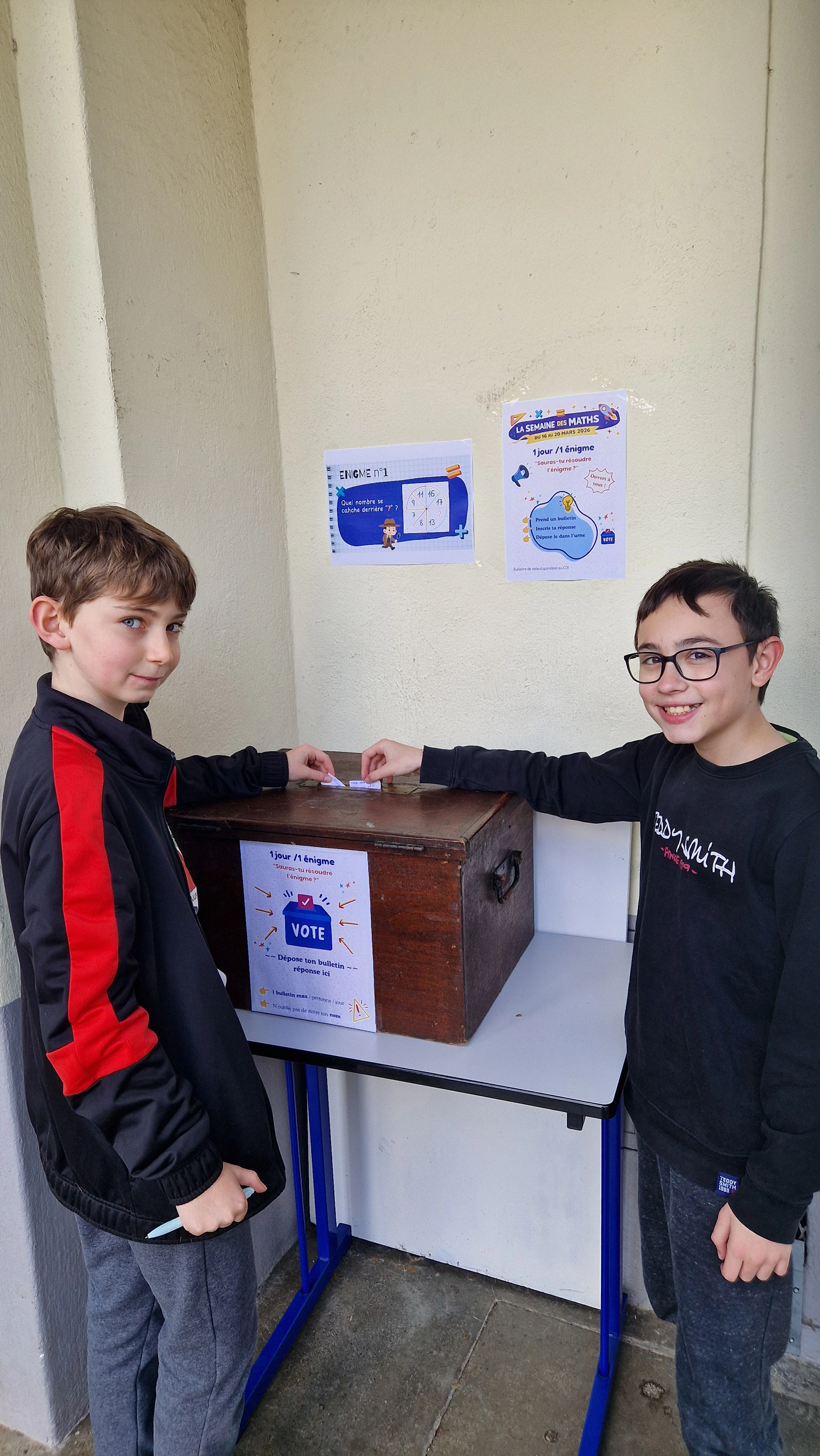 Les collégiens peuvent déposer leur bulletin dans les boîtes à réponses installées dans la cour.
