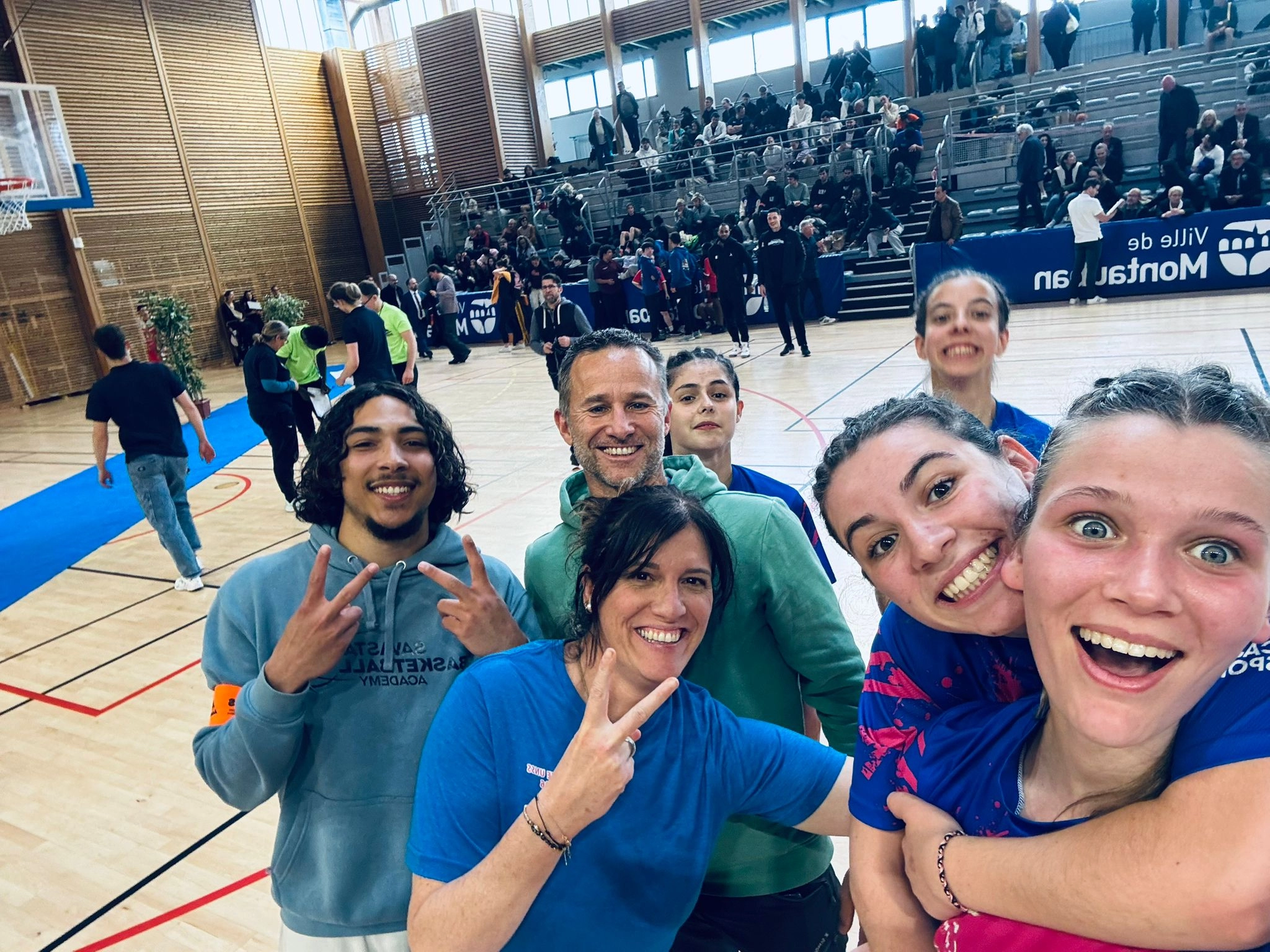 Notre délégation comptait également un jeune arbitre, Victor L., élève de Terminale Métiers de la Sécurité et arbitre national, sélectionné parmi les deux meilleurs arbitres du championnat et désigné pour arbitrer la finale garçons. À leurs côtés se trouvait aussi Noah P., élève de Terminale STMG à La Sède, jeune coach certifié National Coach en basket 3x3, qui accompagne régulièrement les équipes de la Savasta Basketball Academy.
